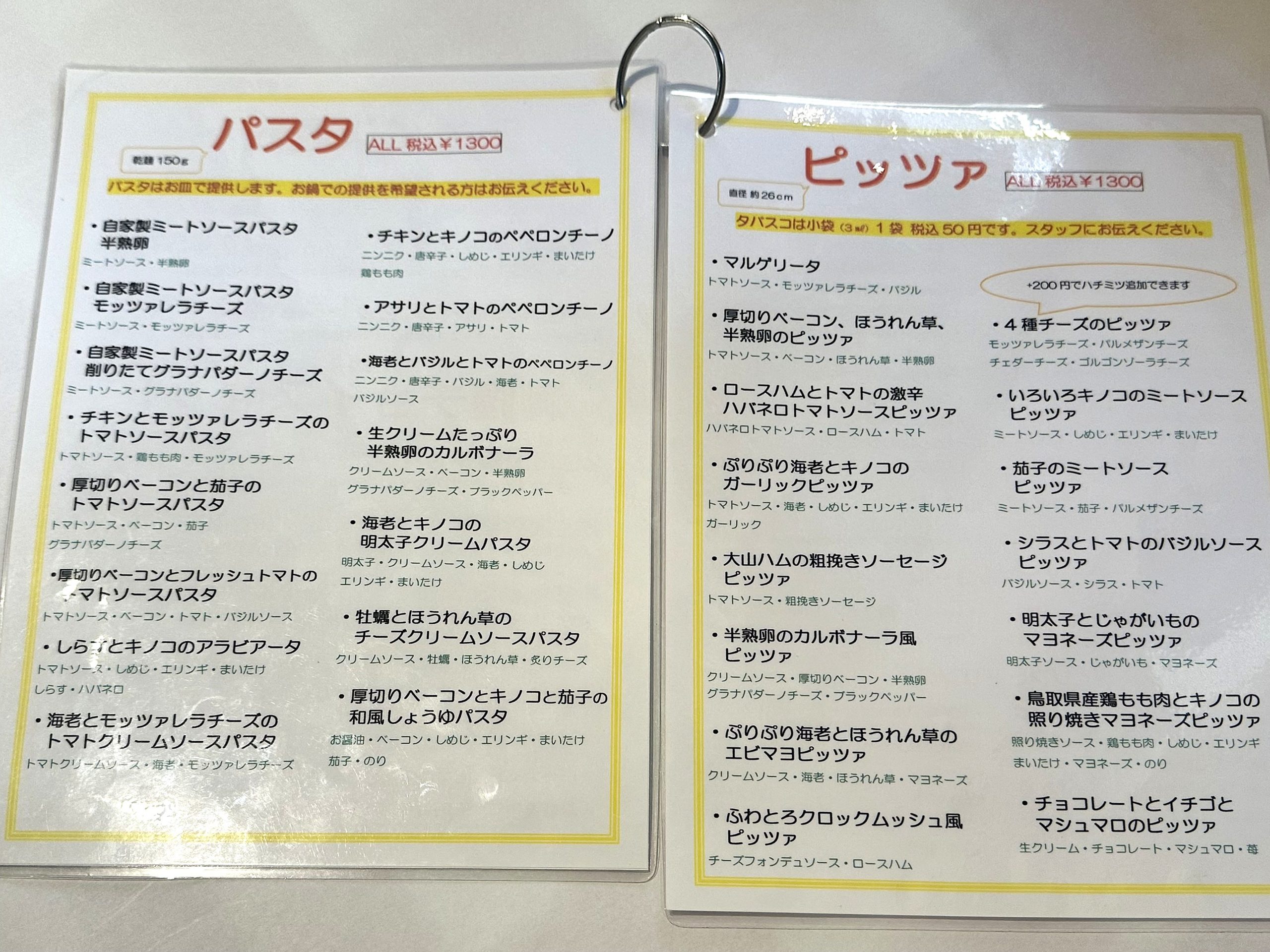 パスタとピザは、すべて同一価格の分かりやすい料金体系で、ボリューム満点。もちろん味は抜群です。