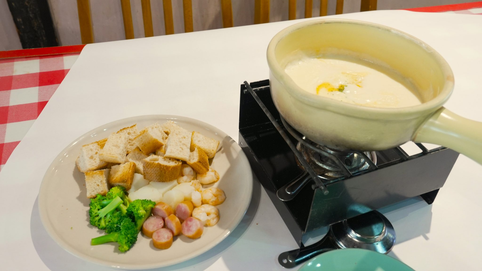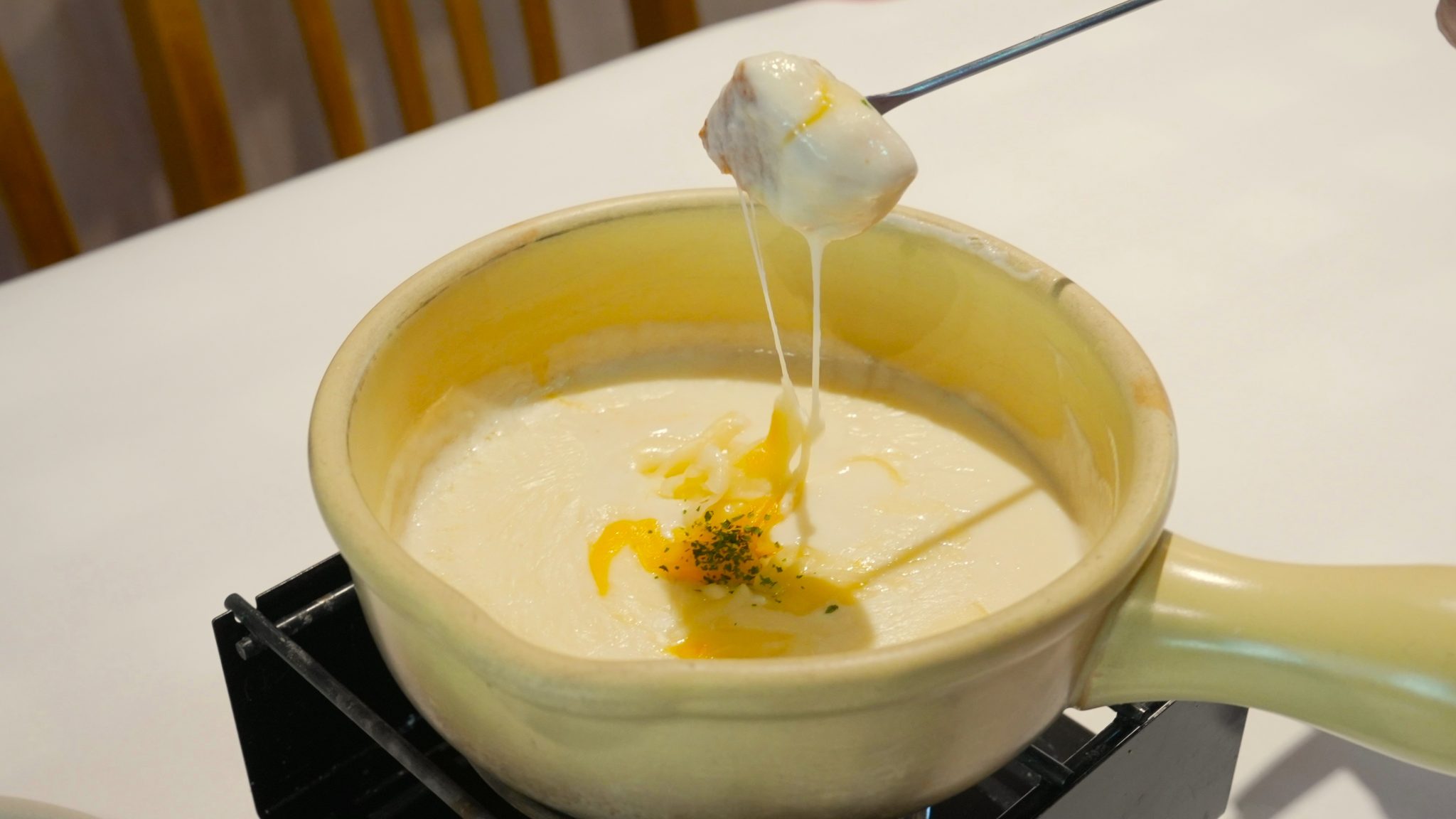パンやエビなどの具材をアツアツのチーズに絡めながら、みんなでシェアして食べる楽しさは格別です。