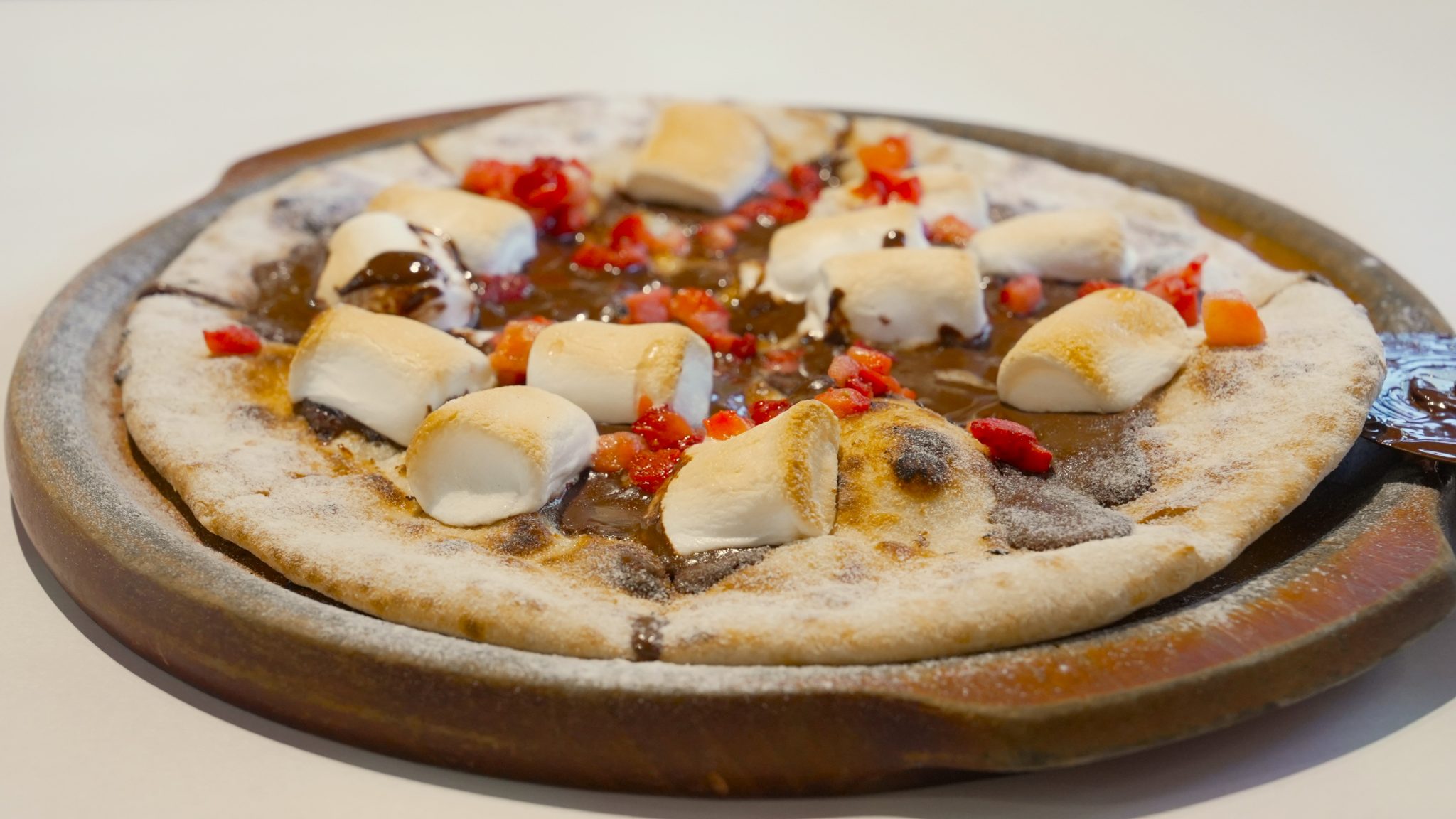 特に注目したいのが、山根千佳さんも絶賛するデザートピザ「チョコレートとイチゴとマシュマロのピッツァ」(ディナー1,300円)。