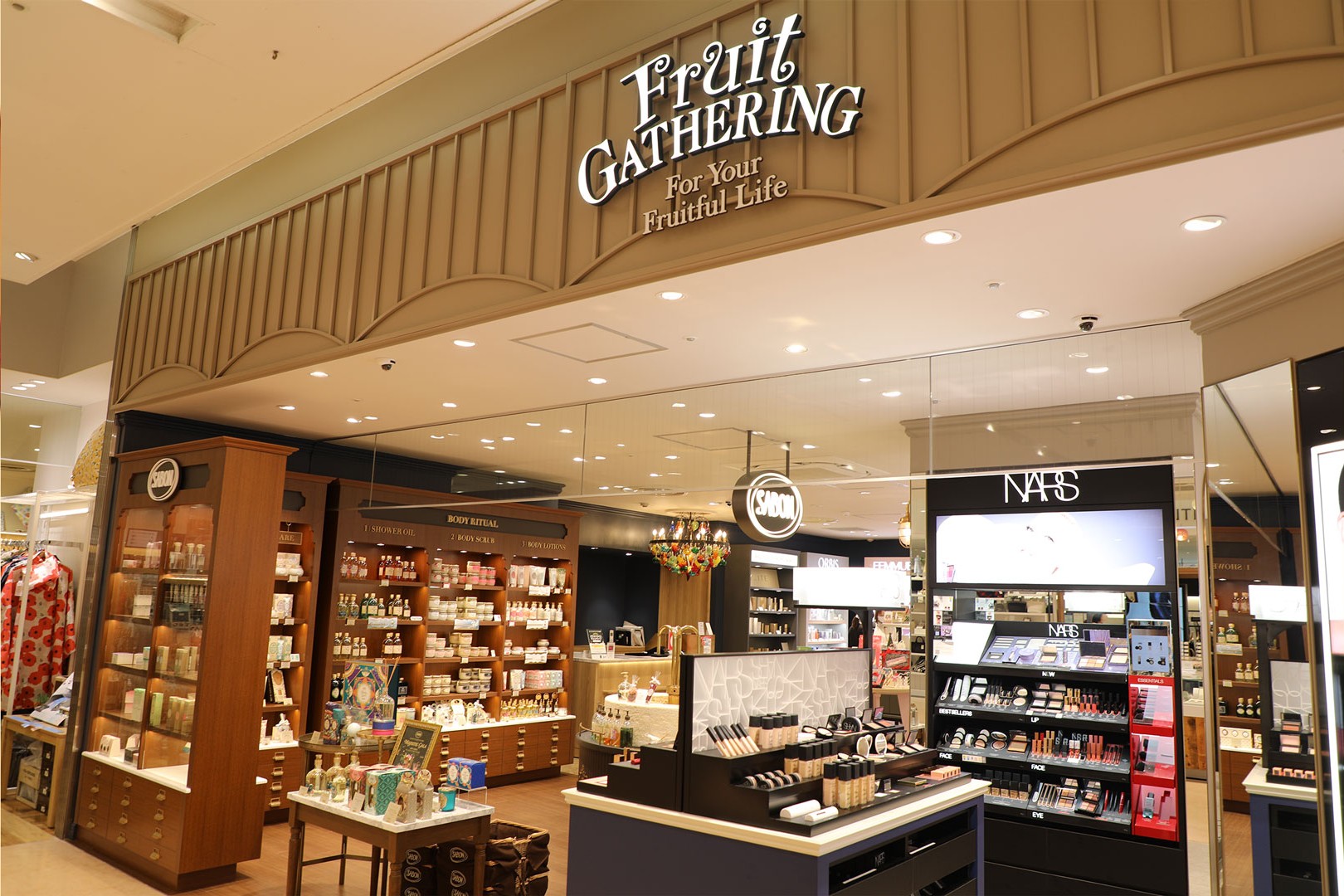 シャミネ松江内にあるフルーツギャザリングは、国内外の人気ブランドのアイテムを多数取り扱うコスメショップ。