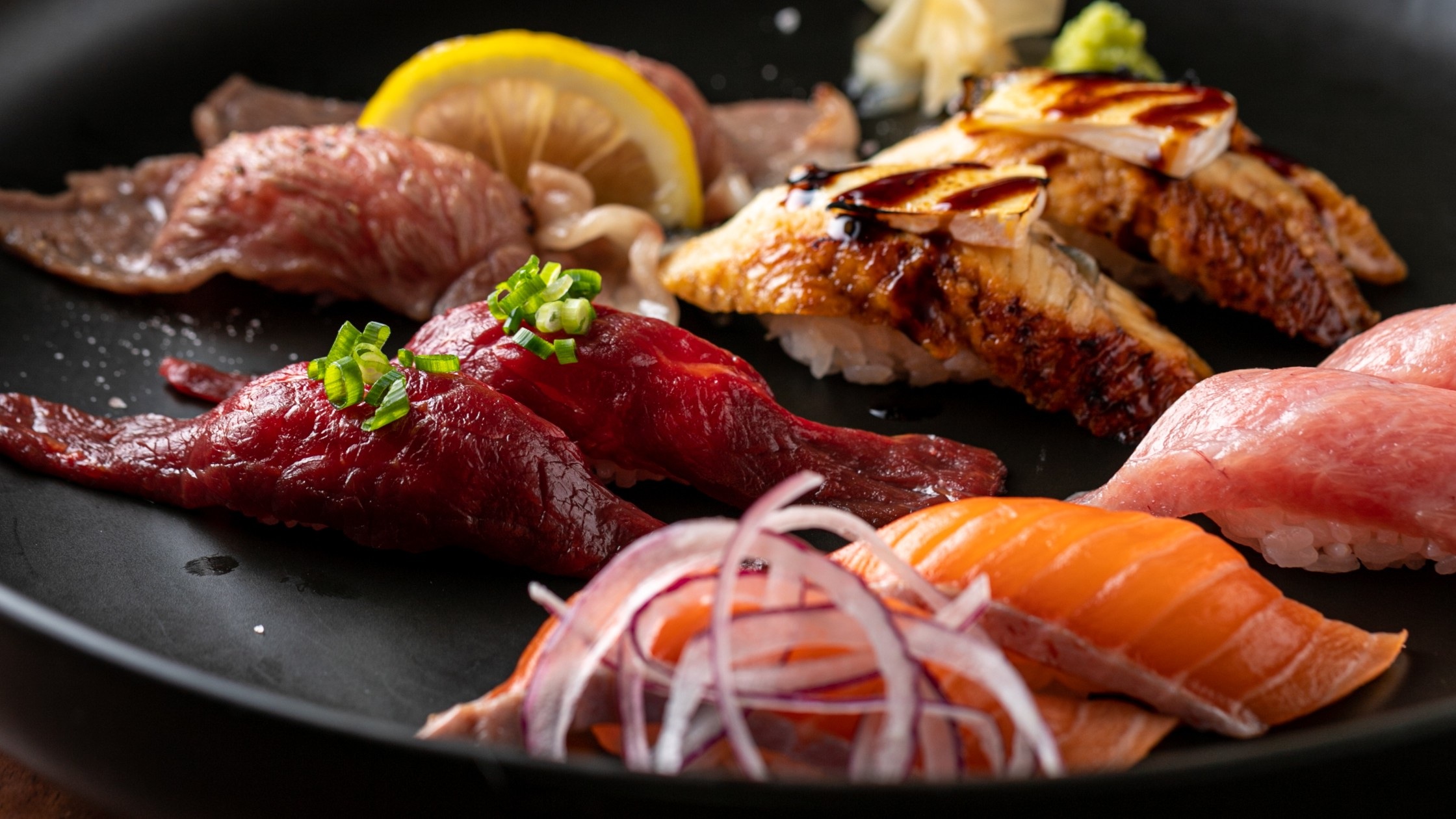 米子市の「肉と魚の寿司 yokaichi 米子駅前」は、地元産を中心とした良質な魚と鳥取和牛のお寿司を楽しめるお店です。