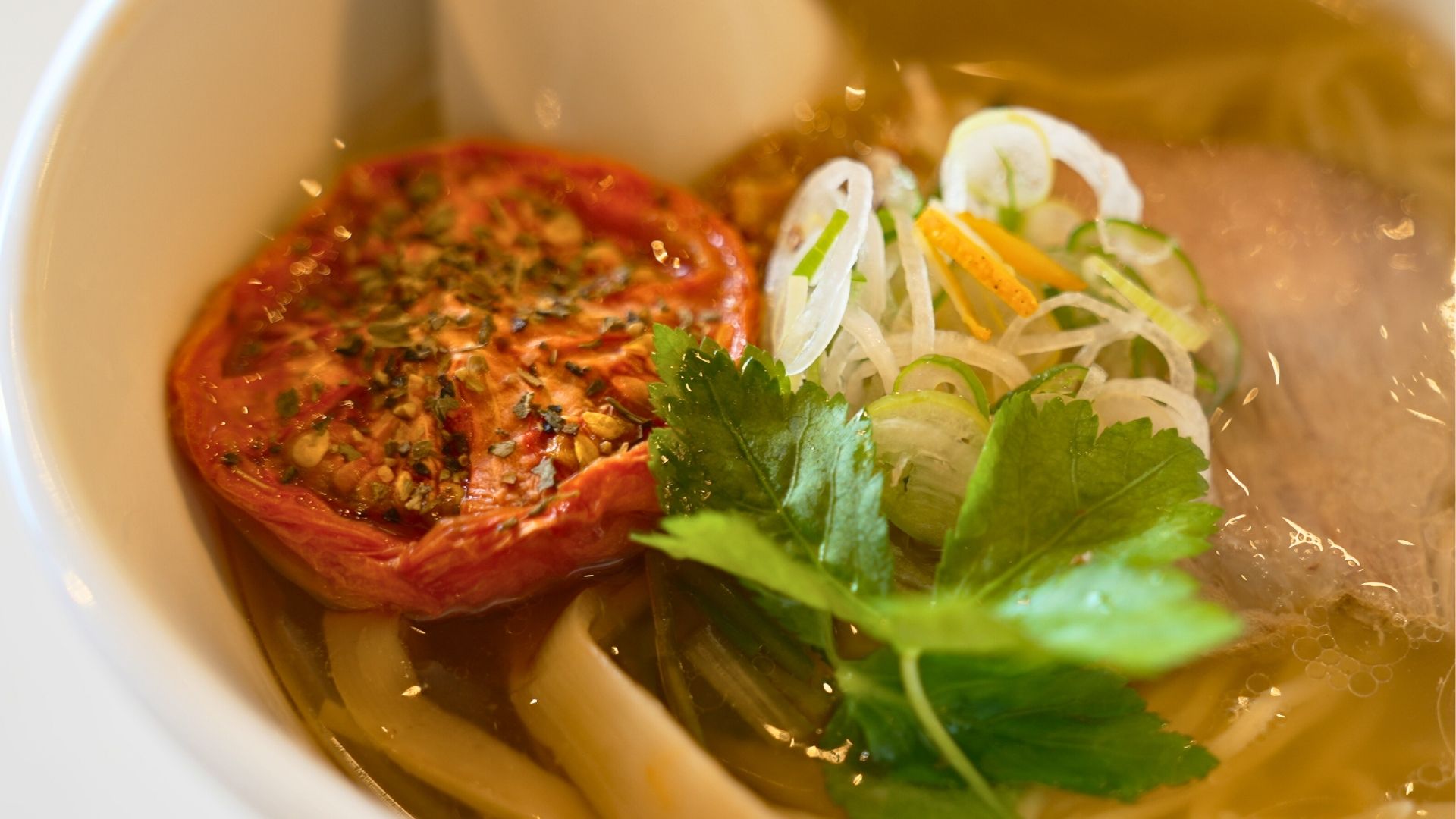 今回いただいた「ローストトマト塩ラーメン」(1,050円)は、女性人気が特に高い一品。