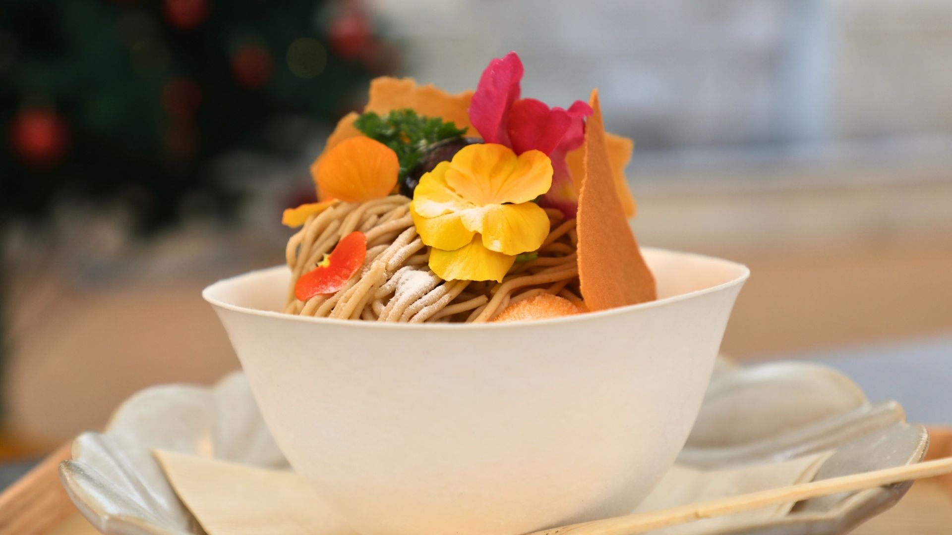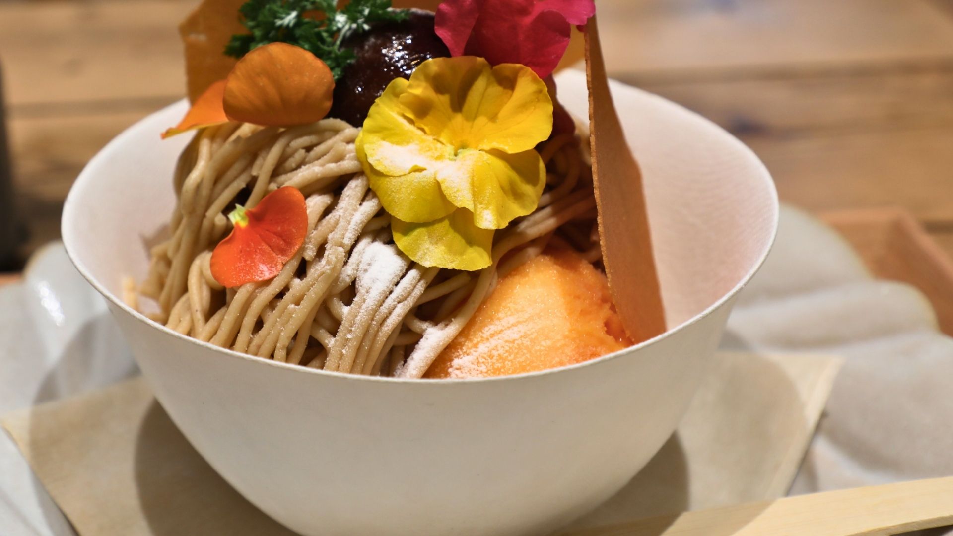 取材時にいただいたのは、「生絞りモンブランパフェ(1,700円)」。