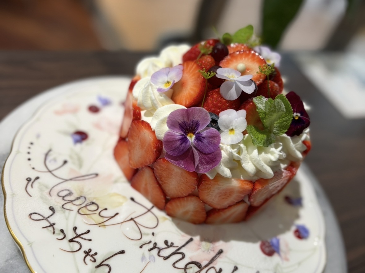 フードホール内の他の飲食店でディナーを楽しんだ後、華やかに飾り付けられたケーキを登場させることができます。誕生日や記念日のサプライズ演出にぴったりのサービスです。
