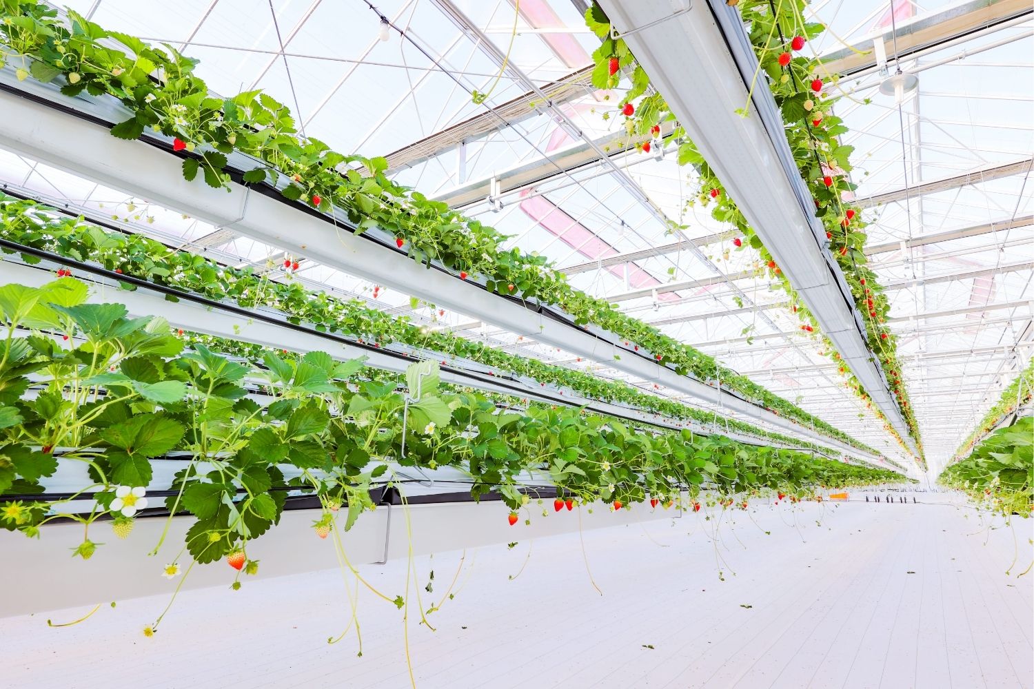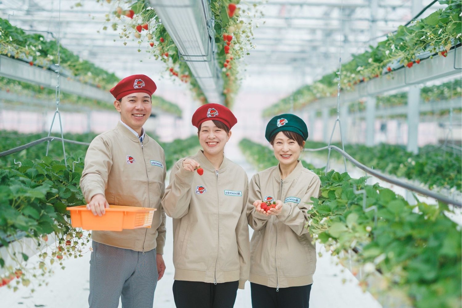 「出雲ICHIGO縁」は、中国地方最大規模となる可動式空宙プランターで約5万株のいちごを栽培。プランターの高さを調節できるため、立った状態で収穫でき、快適にいちご狩りを楽しめます。