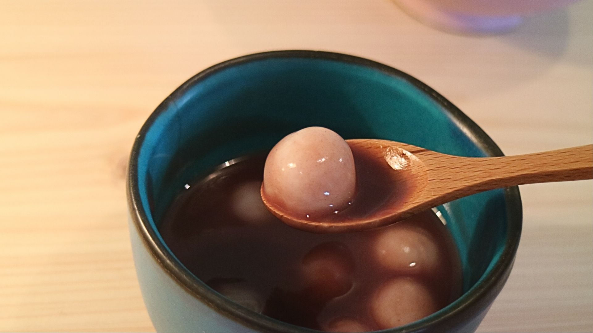 おしるこは、とろんと滑らかな舌触り。口に含むと甘酒の風味がふんわり広がり、あとからあんこの甘さがやってきます。もちもち柔らかい白玉も完成度の高い一品です。