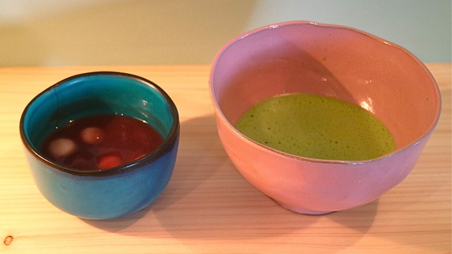お抹茶はおしることの相性が抜群。すっきりとした後味が、おしるこの甘さを引き立てます。