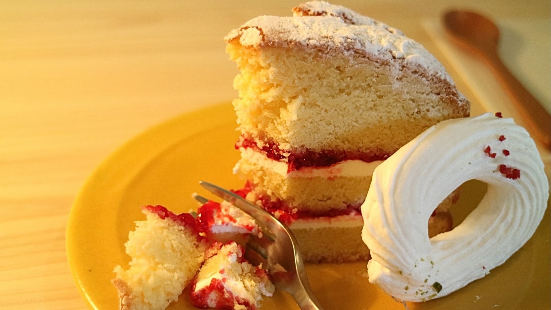 さらに本日のケーキを追加。登場したのは、イギリスの伝統的なお菓子・ヴィクトリアケーキです。
