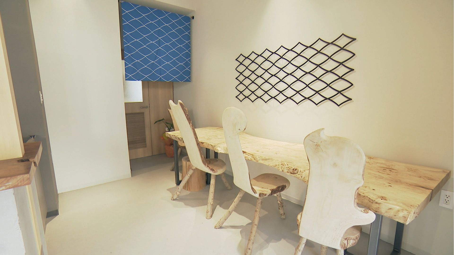 個性的な一枚板のテーブルと椅子を配したイートインスペースは雰囲気抜群。観光の思い出作りに立ち寄るのにもぴったりです。
