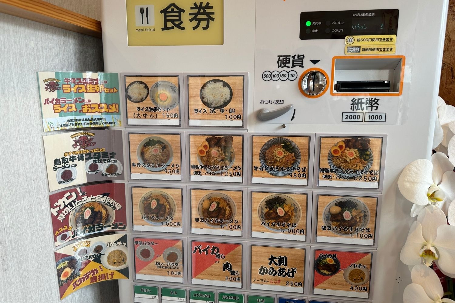 注文は食券制ですので、現金のご用意を。
