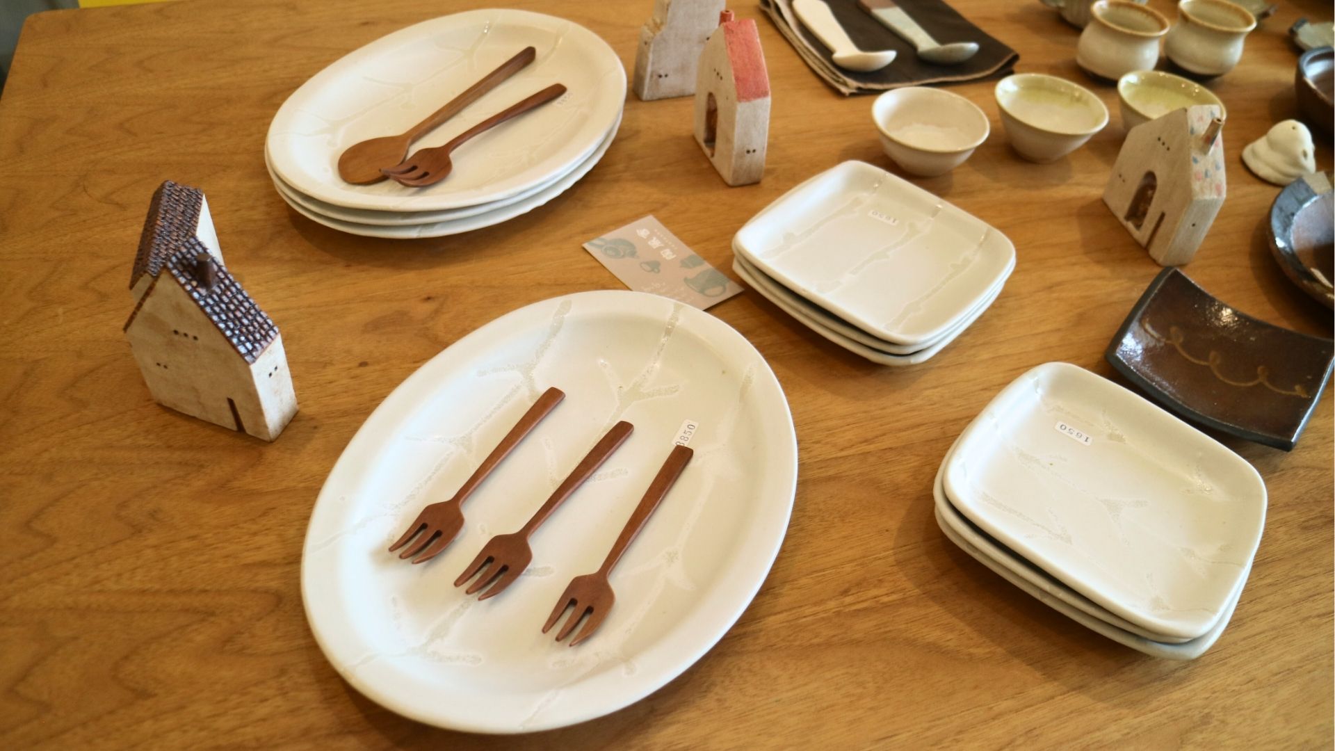 松江市の「陶風舎」や「いまみや工房」などの器を取り扱っており、デザイン性がありながら普段使いしやすいアイテムが揃っています。