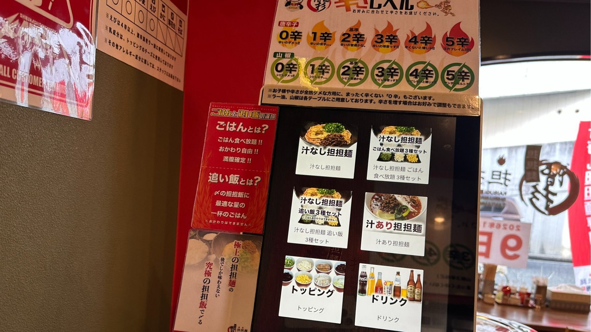 どちらも0(辛さなし)から5段階まで設定でき、激辛好きから辛いものが全く食べられない方まで、自分好みの担担麺を注文できます。