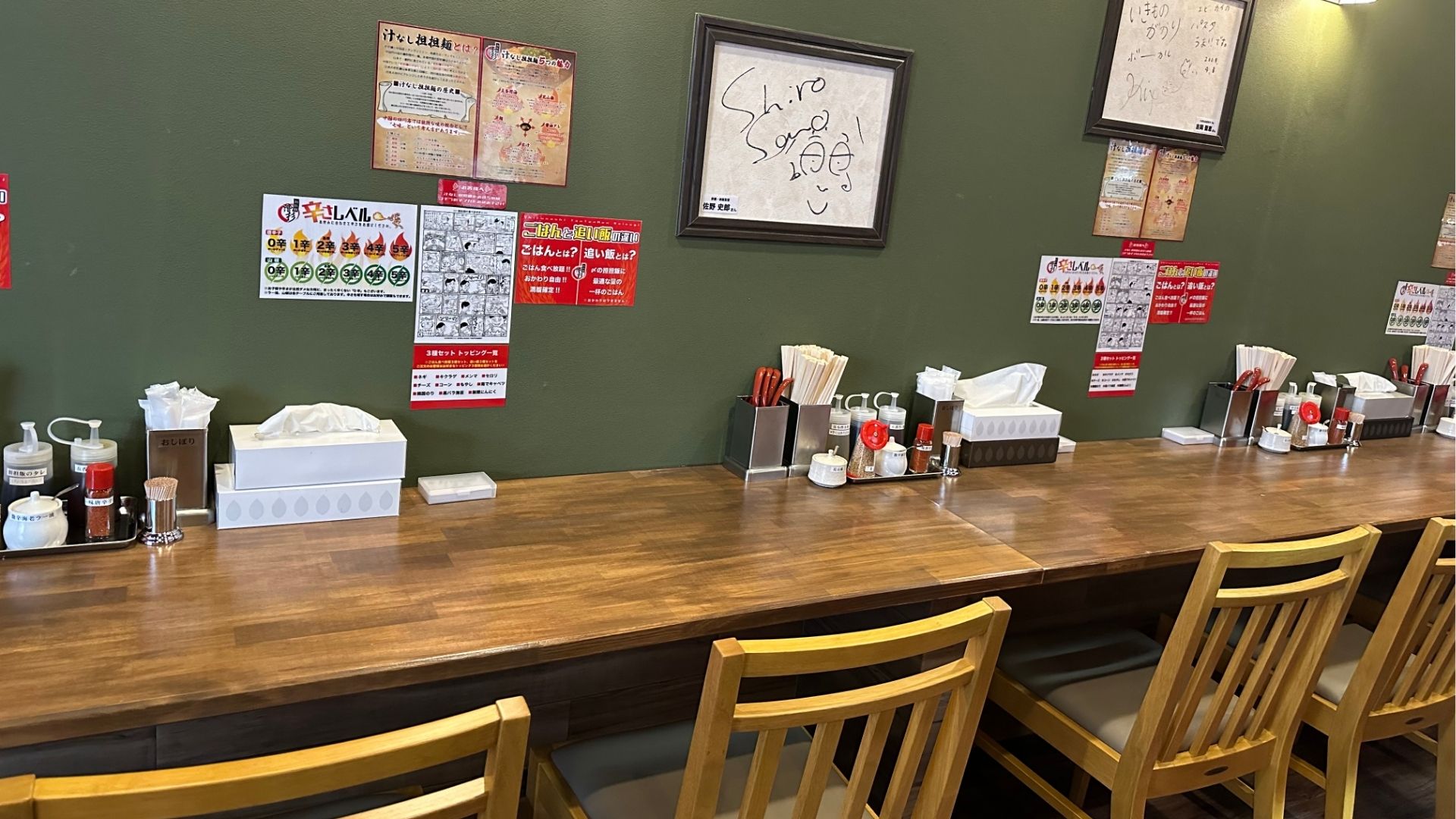 唐辛子の辛さと山椒のしびれをそれぞれ5段階で選べるカスタマイズ性と、豊富な卓上調味料や追加トッピングによる味変が特徴。