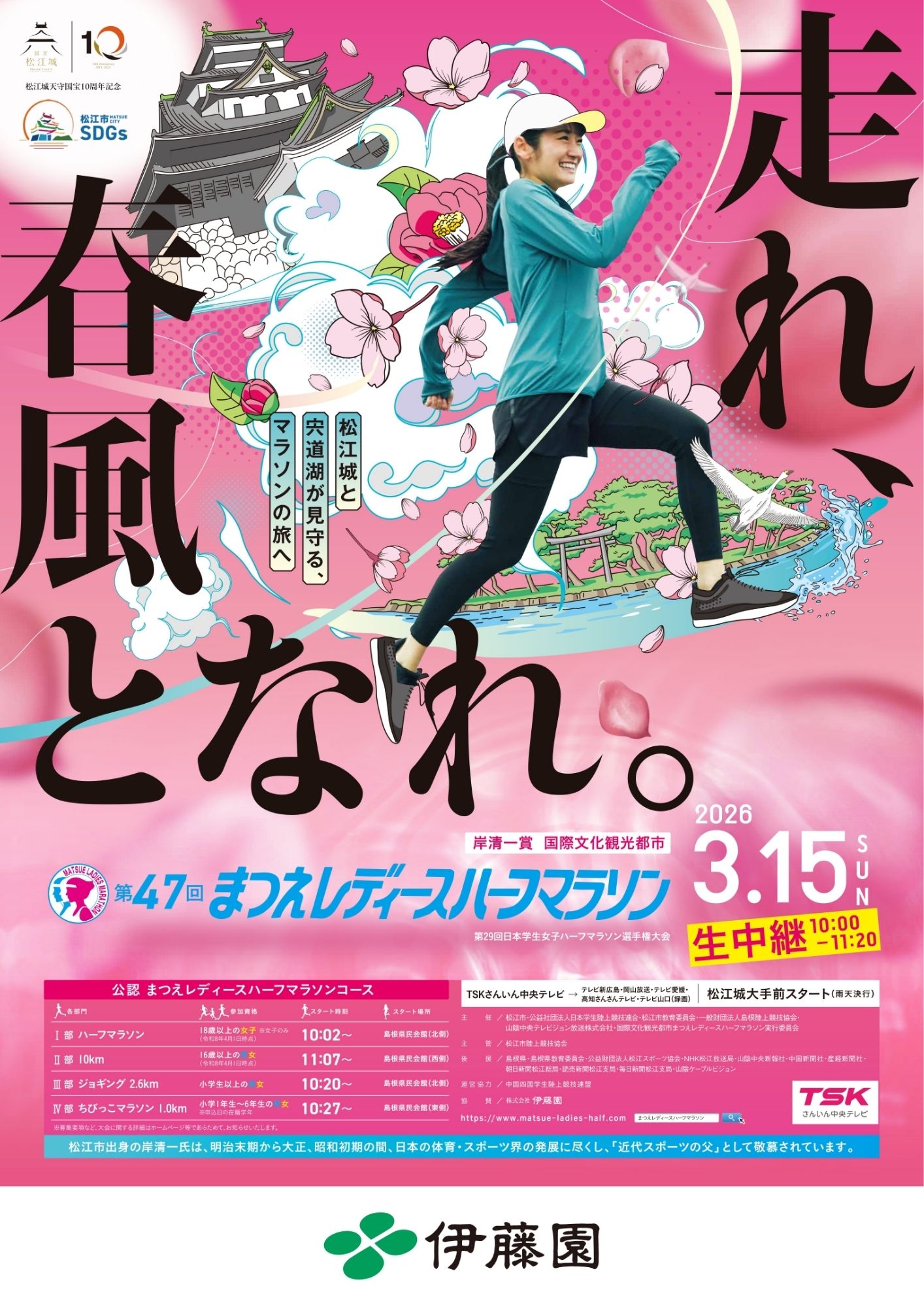 2026年3月15日(日)開催の「第47回まつえレディースハーフマラソン」。
