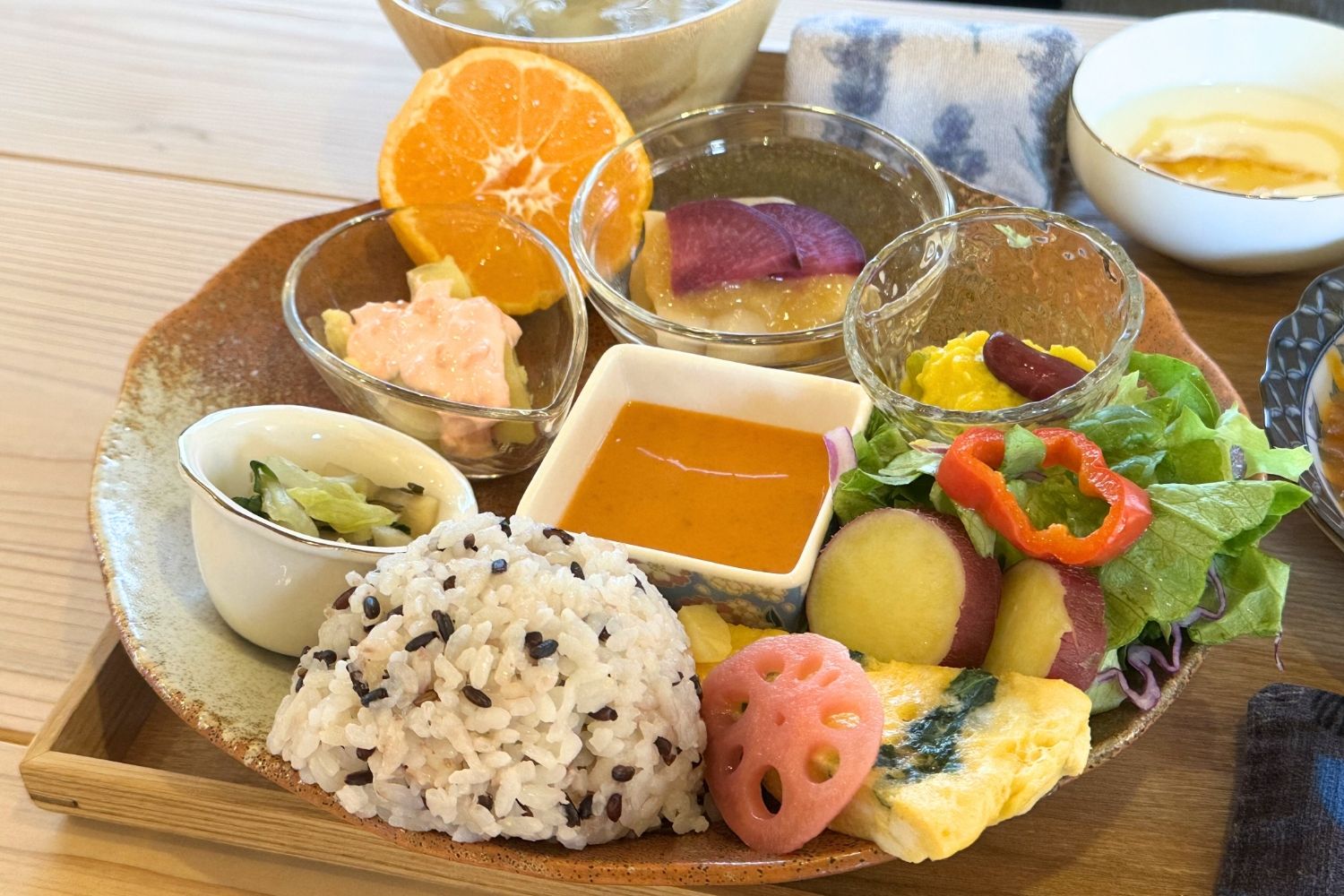 プレートのおかずは野菜の甘みを感じる優しい味わい。色々な料理を少しずつ、飽きずにいただけるのも嬉しい!