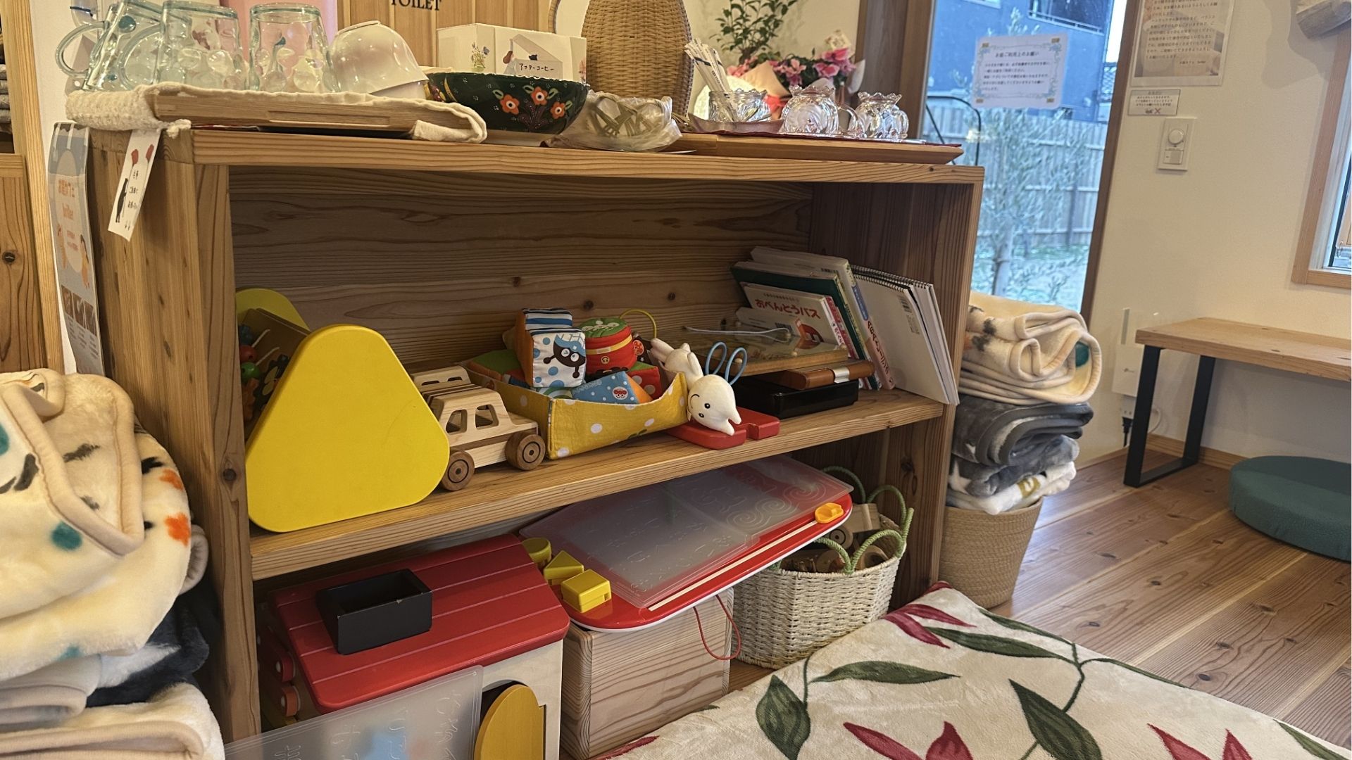店内には絵本やおもちゃがあり、小さなお子さんも退屈することなく時間をすごすことができます。