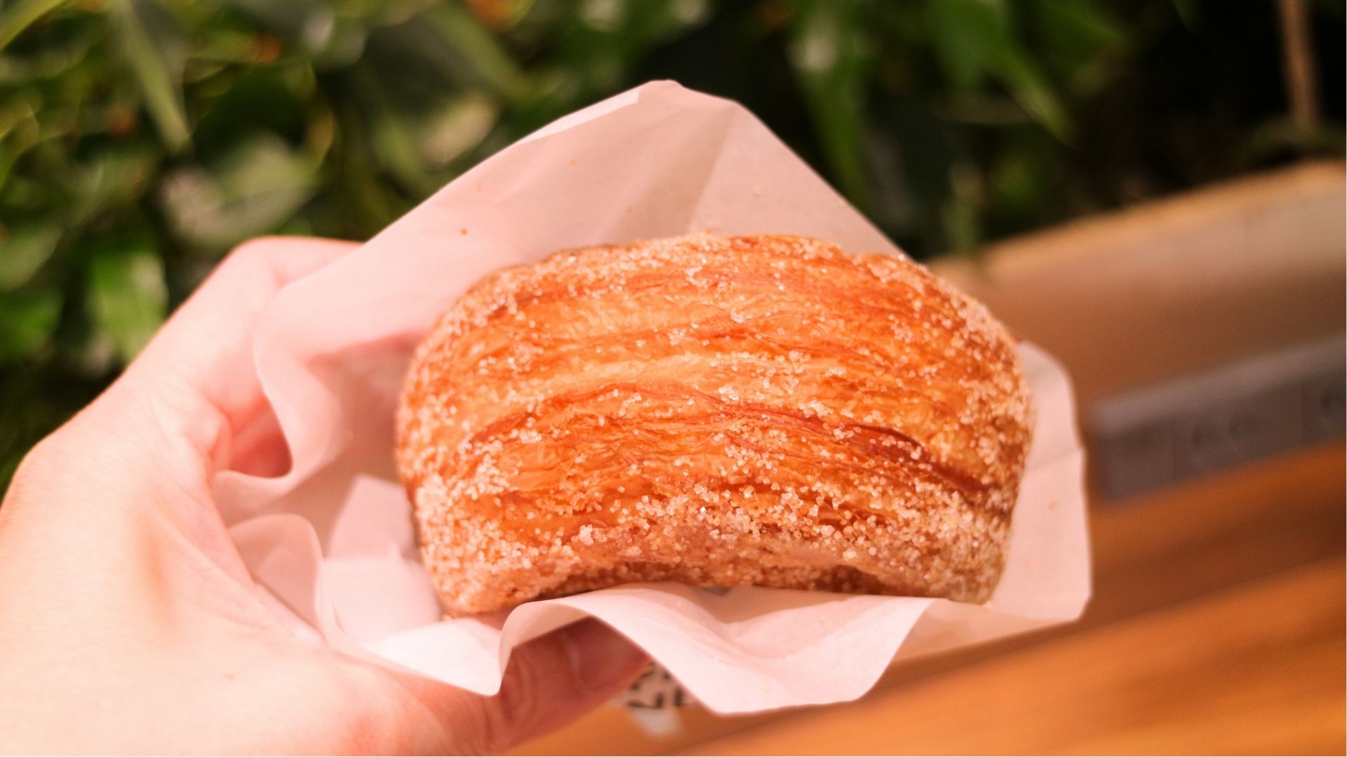 実際に食べてみると、外はクロワッサンのようなサックリ感があり、中はふんわり。食感の変化を楽しめます。