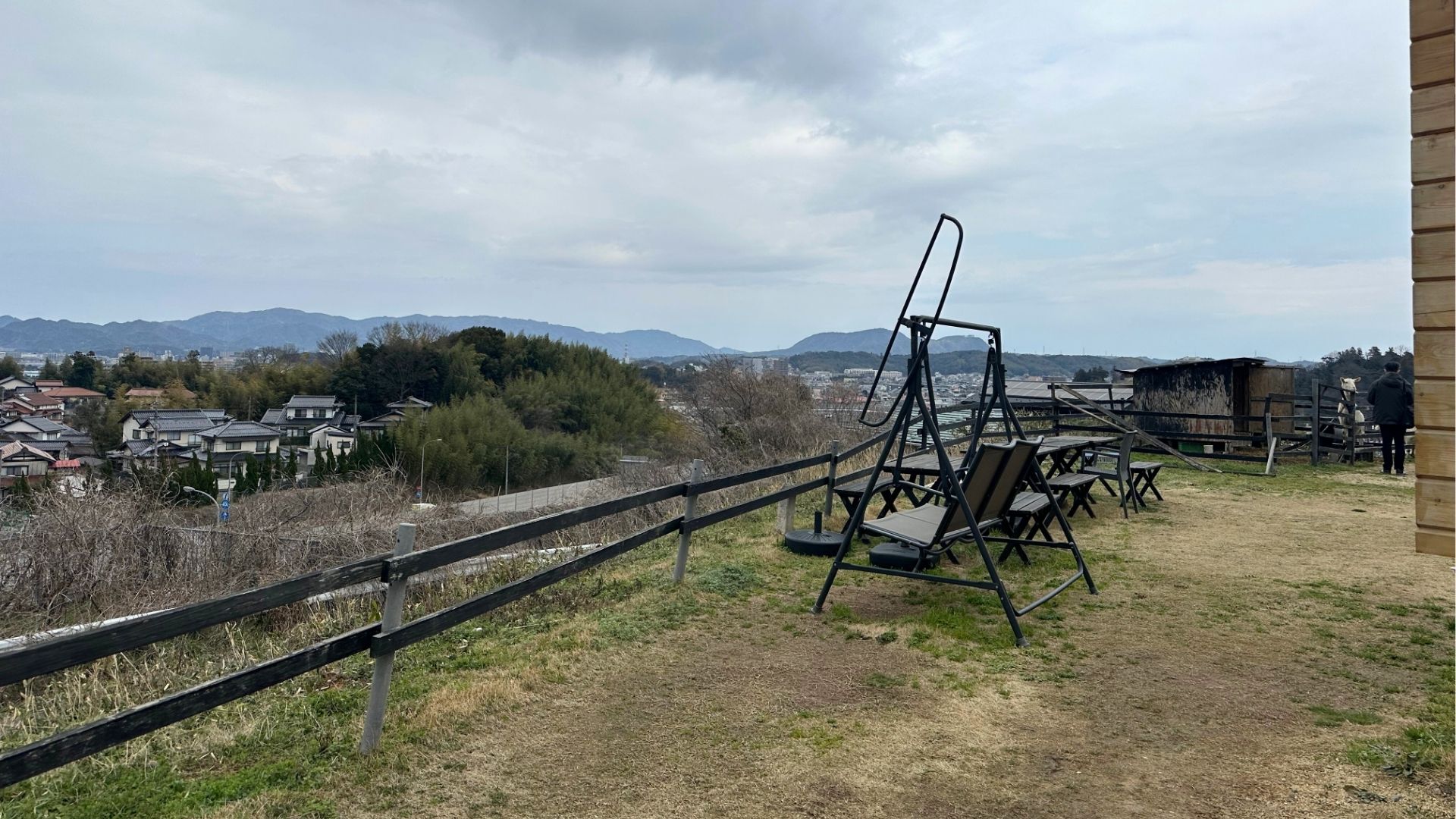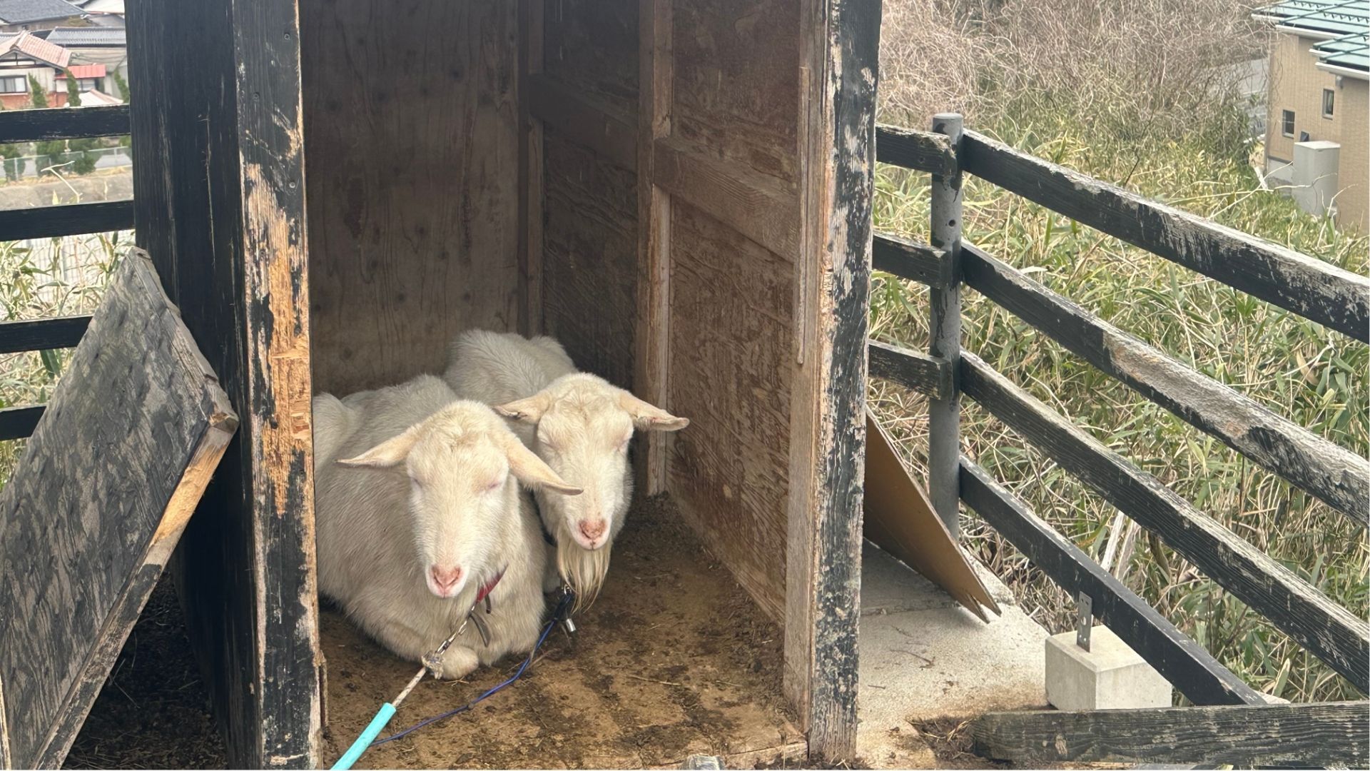 広々とした敷地には子供用の遊具が設置。ヤギが2匹のんびりと過ごしています。