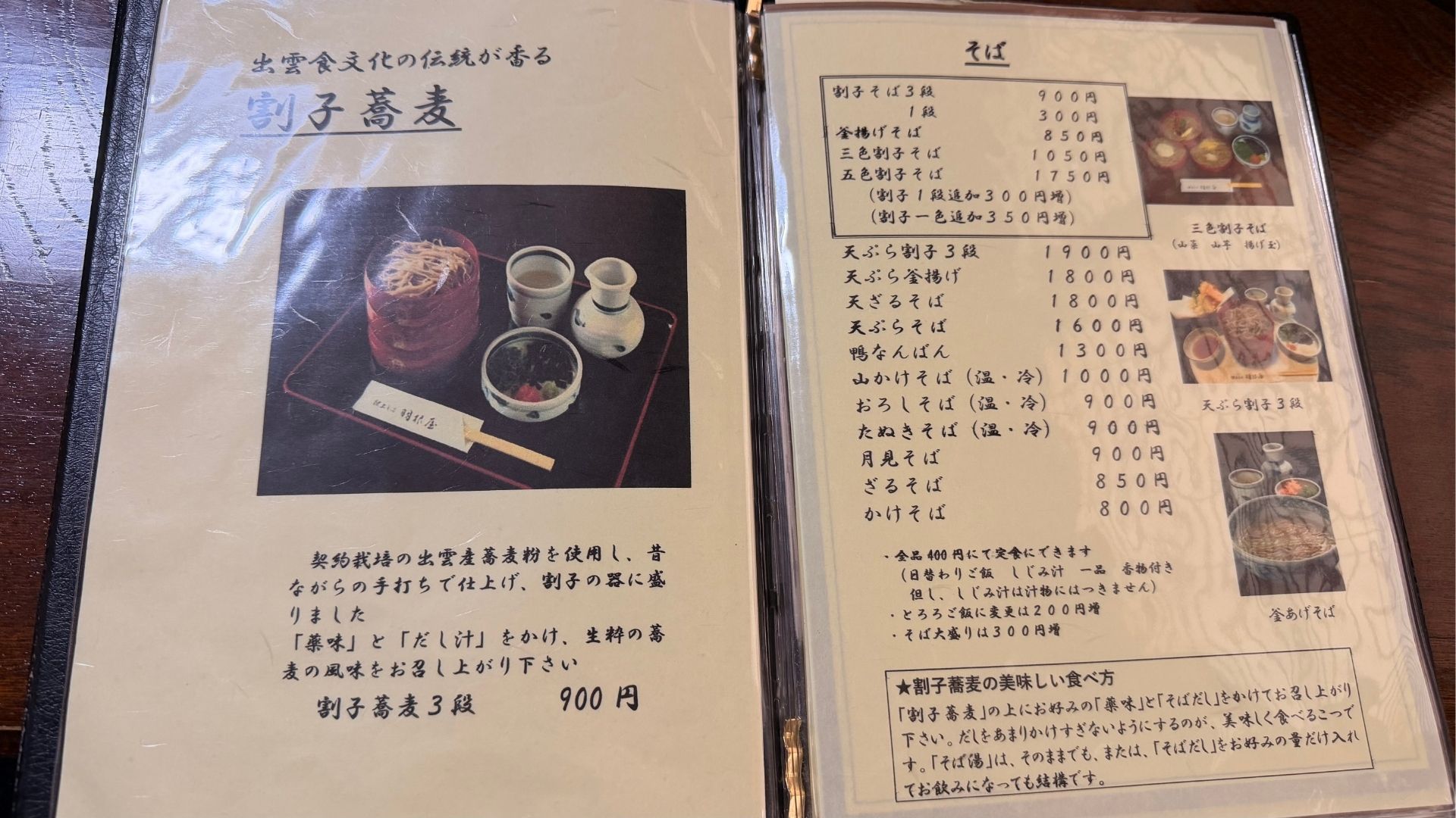 看板メニューは、出雲産蕎麦粉を使い手打ちで仕上げた割子そば。出雲観光の際にも、ぜひ立ち寄りたい一軒です。