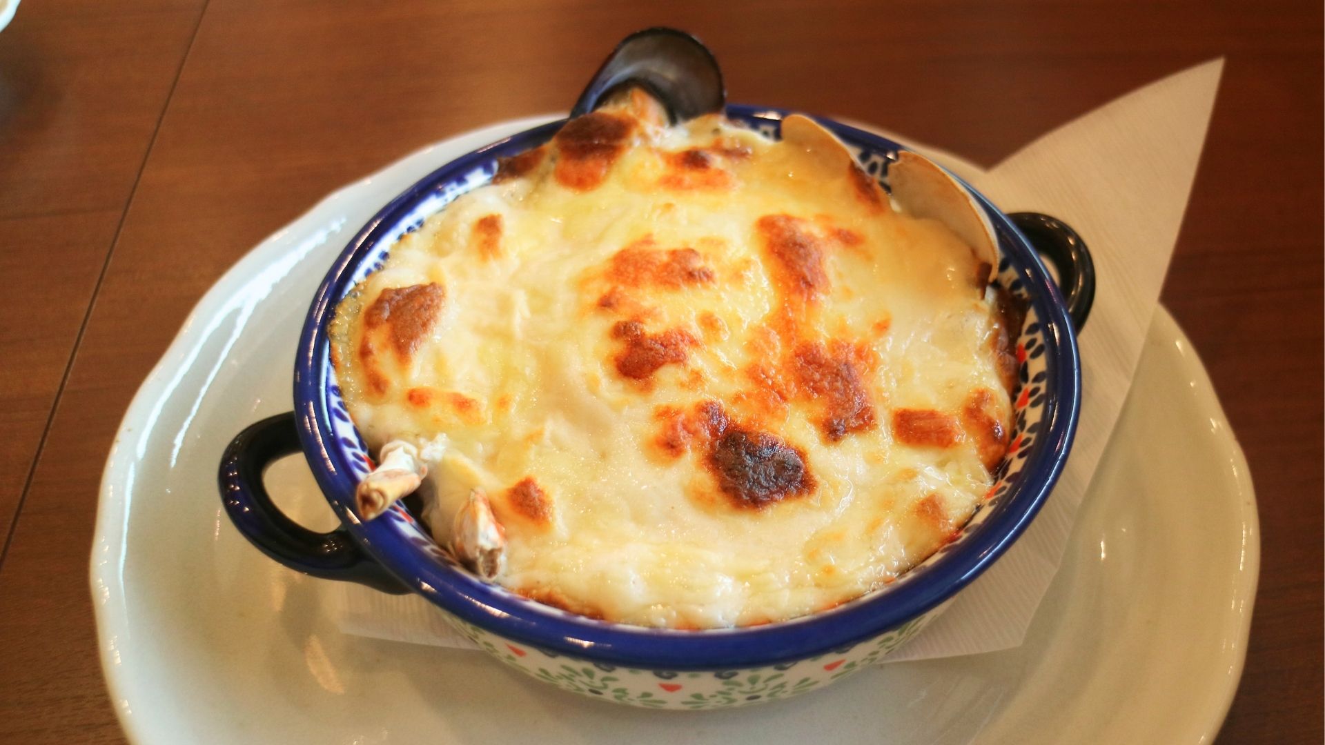 ぐつぐつの状態で運ばれてくるドリアは、自家製ホワイトソースがなめらかでミルキーな味わいです。
