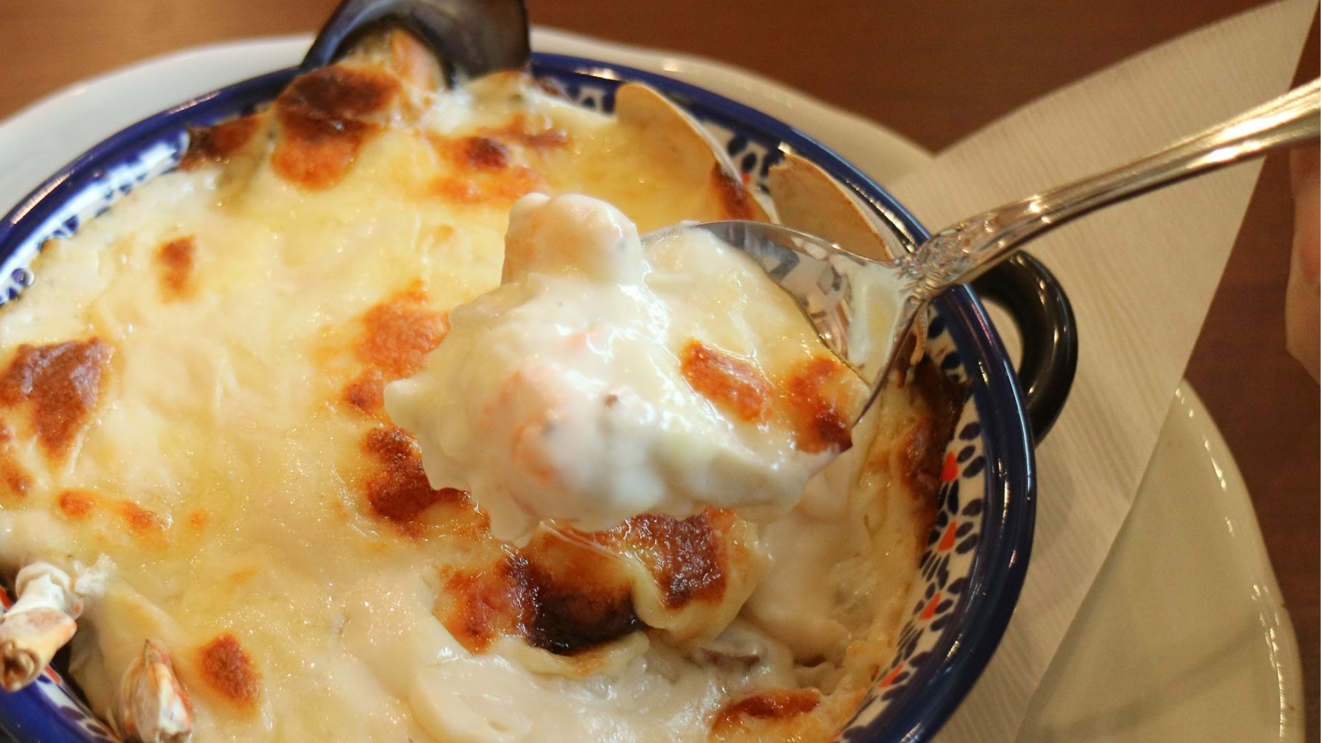 渡り蟹、ムール貝、エビ、サーモンなど、魚介がたっぷり。さまざまな食材の旨みがソースに溶け込んでいます。