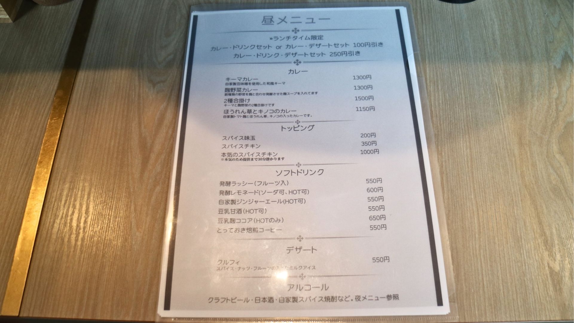 今回いただいたのは、「2種合掛け」(1,500円)。キーマカレーと麹野菜カレーのあいがけです。