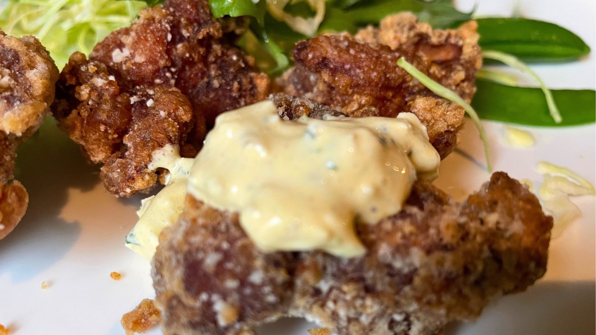 衣は薄くてサクサク、中の鶏肉は柔らかくてジューシー。ほんのり醤油味で、何個でも食べられそうなおいしさです。