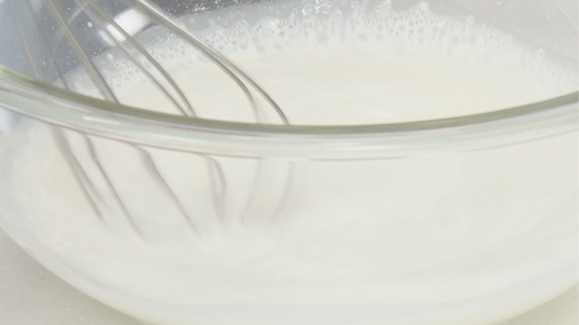 - ボウルに牛乳と小麦粉を入れ、泡立て器でよく混ぜる