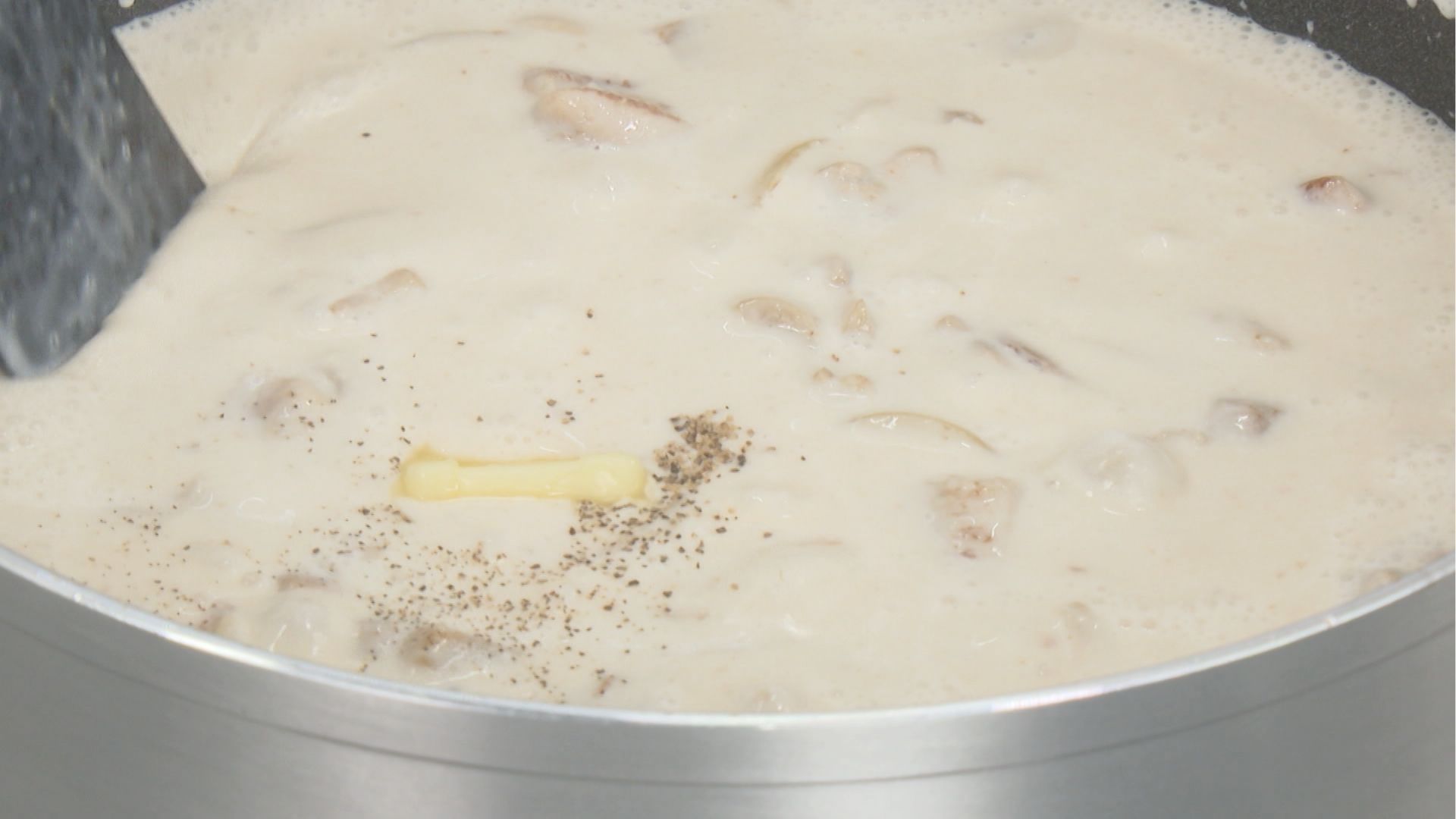 焦げた部分があると、ホワイトソースが茶色くなってしまいます。