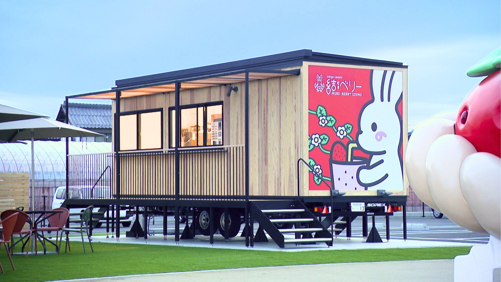 はじめに紹介するのは、出雲ICHIGO縁の園内にある、トレーラーハウスを活用したテイクアウト専門のカフェ「結べリーカフェ」。