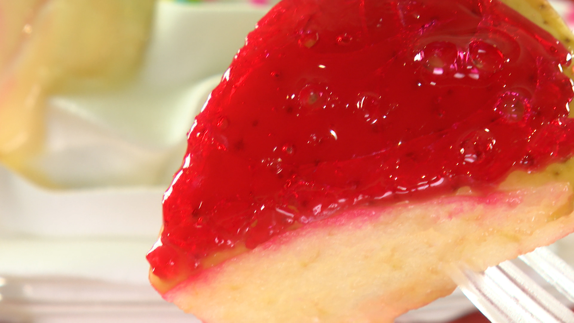ジューシーでシャキシャキしたりんごと、パリッと軽やかな食感の飴がベストマッチ。癖になる美味しさです。