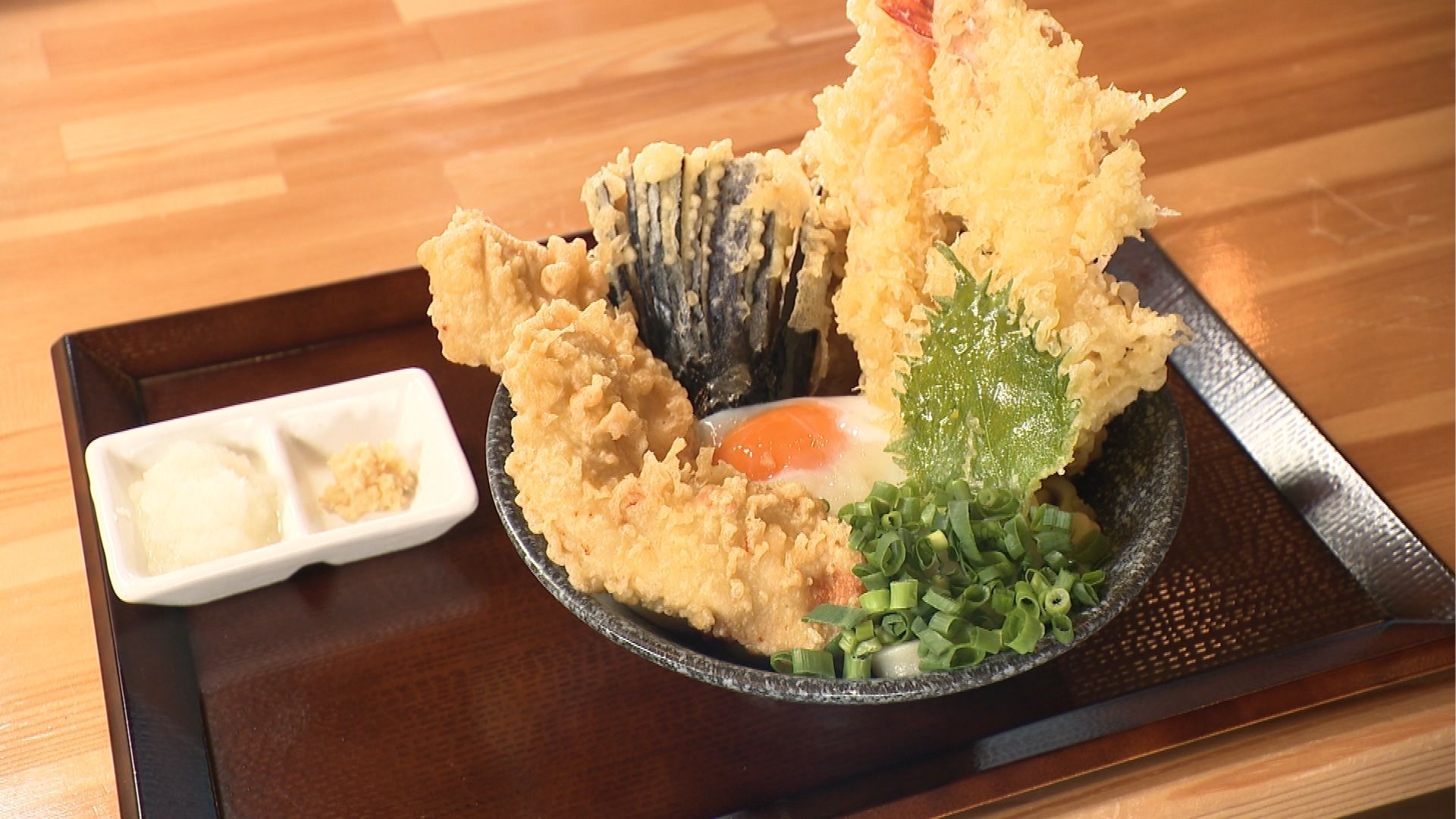 揚げたてサクサクの天ぷらに温たまごを絡めてまろやかに、大根おろしと生姜でさっぱりと。様々な味わいを楽しめるため最後まで飽きることがありません。