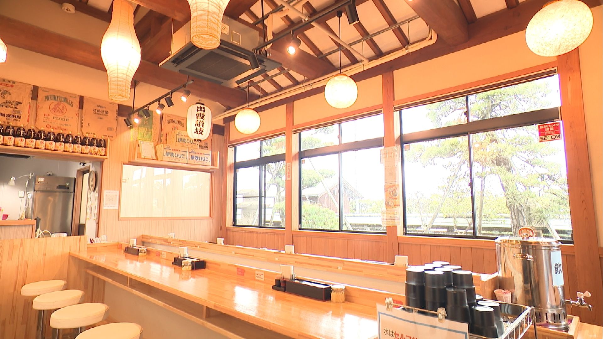 壁には使用している小麦粉のパッケージがインテリアとして飾られており、うどんへのこだわりが感じられます。
