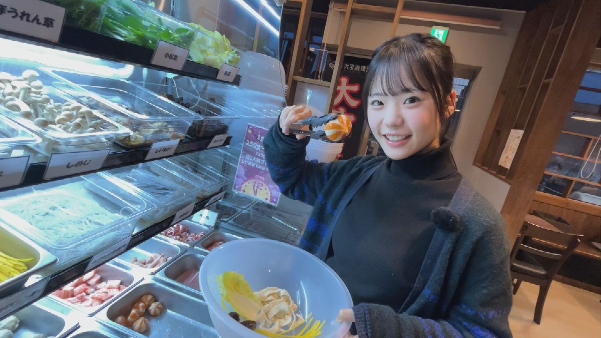 自分好みの麻辣湯の作り方をご紹介!まずは具材コーナーで、約30種類の具材と麺から好きなものを選んでボウルに入れます。