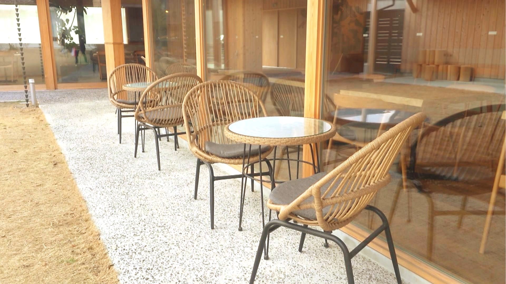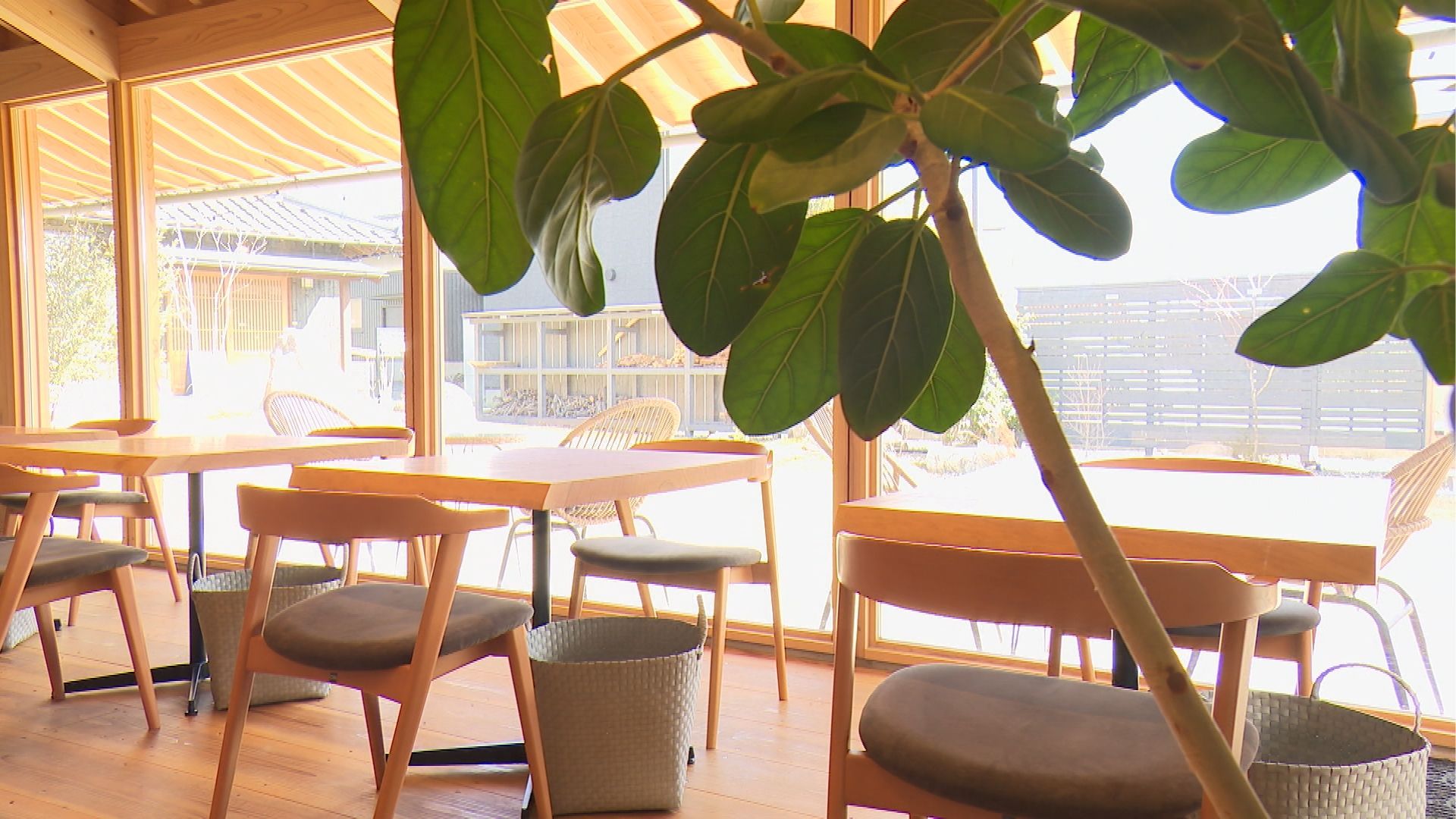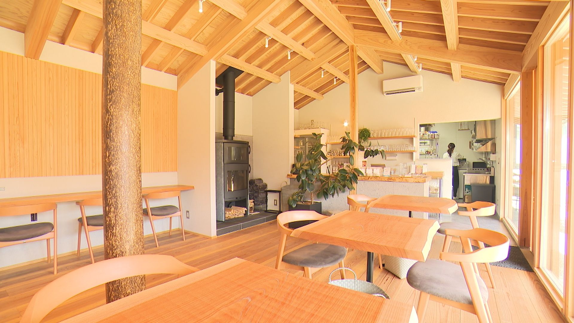 天然木の内装がおしゃれな出雲市のカフェで、季節を感じるランチタイム