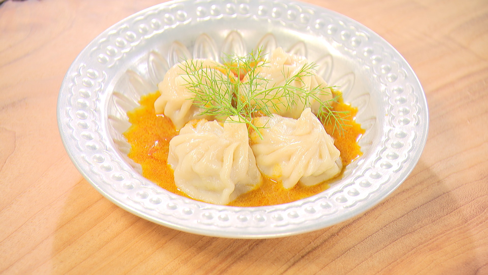 豚肉、スパイス、玉ねぎなどを混ぜた餡を皮に包んで蒸し、ピリ辛ソースをかけて食べるネパールの定番料理です。