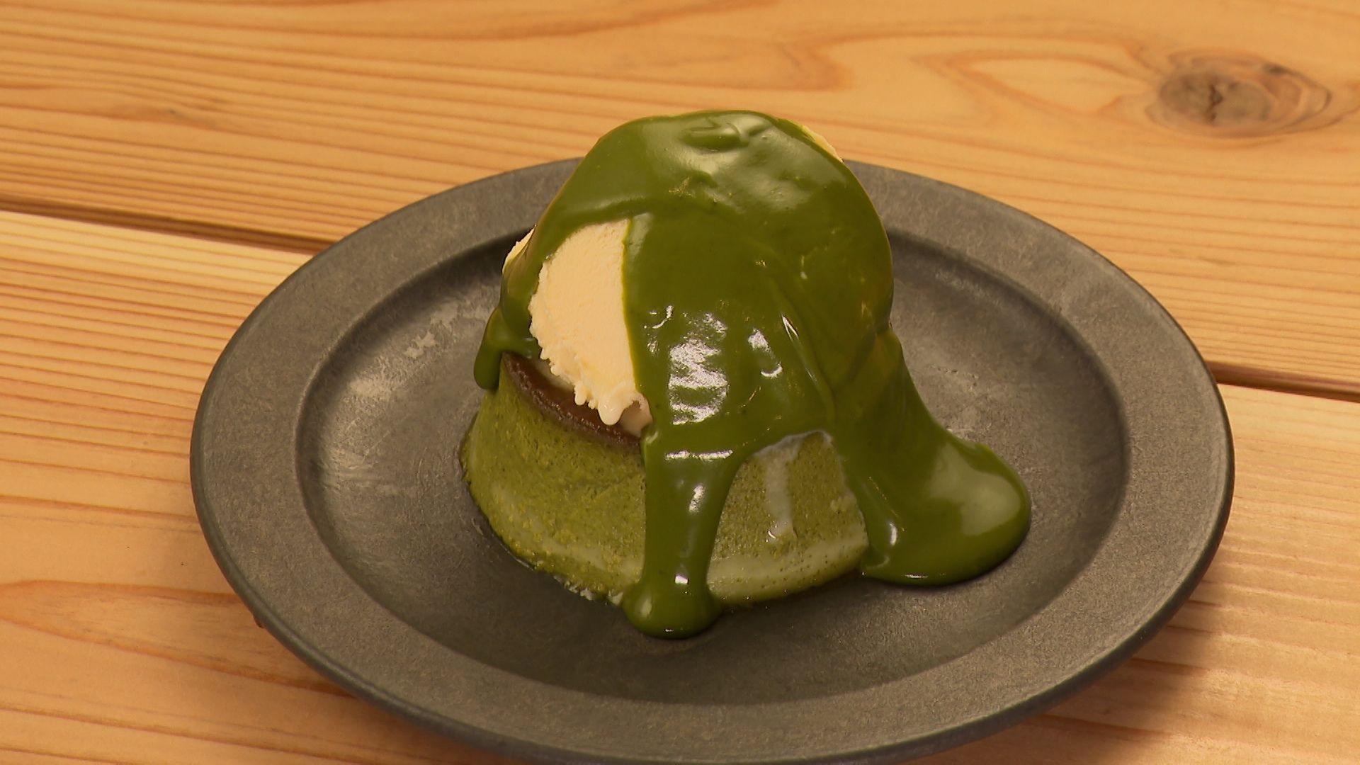 なめらかな口溶けで、上からかかった抹茶ソースやバニラアイスとの相性も抜群です。