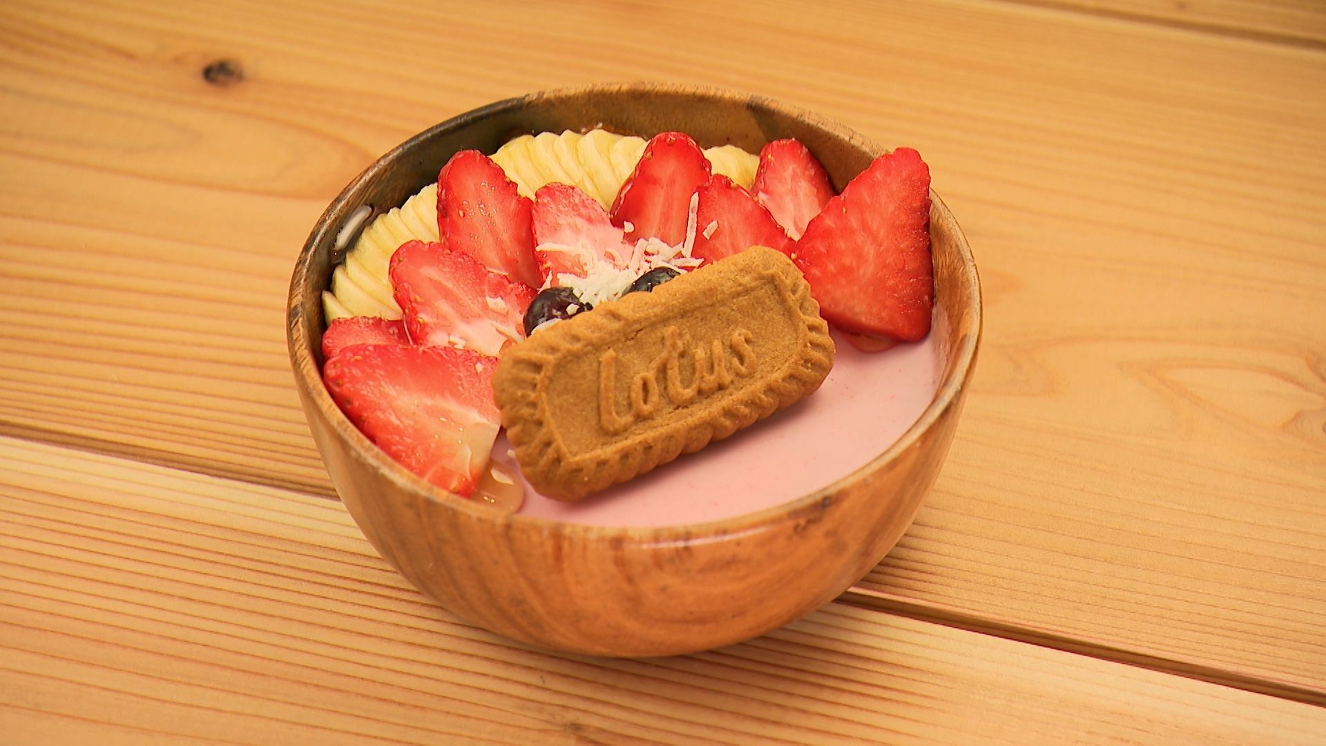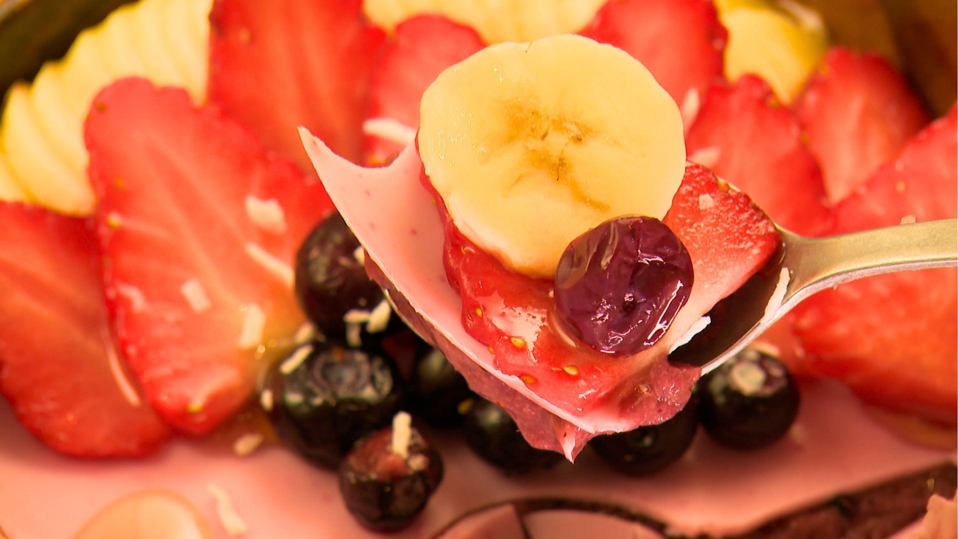 上にはいちごやバナナをトッピング。アサイーといちごの甘酸っぱさと、チョコの甘さが好相性です。