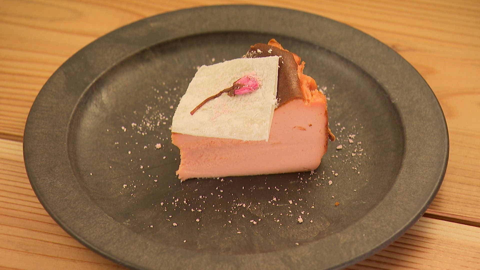 「さくらバスクチーズケーキ」(800円)は、桜シロップで風味を加えた自家製チーズケーキ。