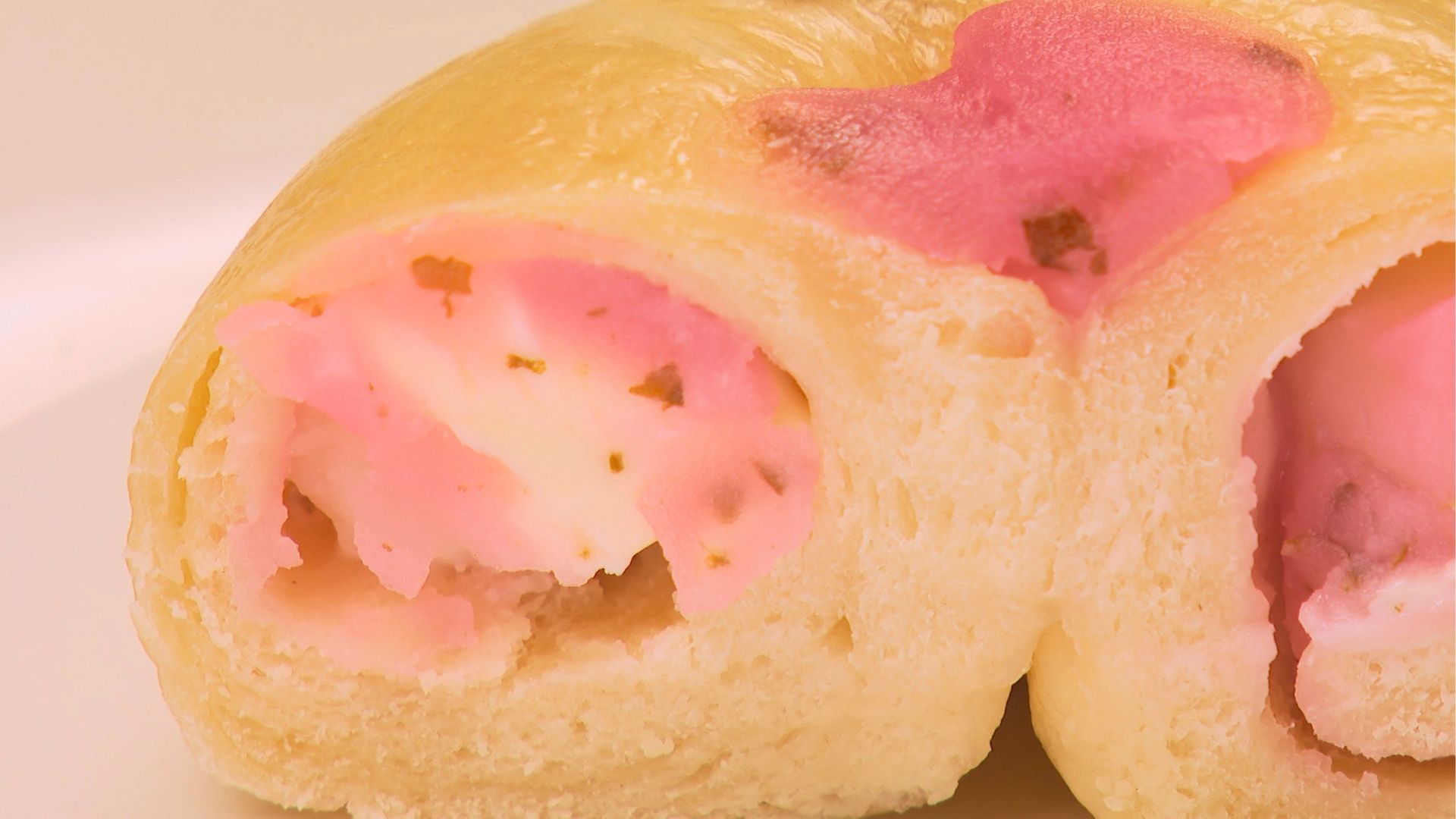 この春限定の新作は、「春の桜もちベーグル」(380円)。その名の通り桜もちをイメージしたベーグルです。