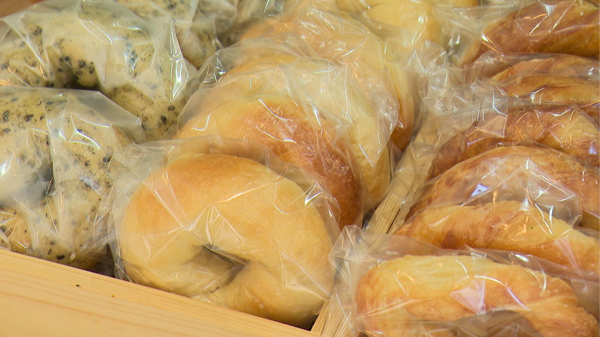 店内には、フルーツなどを使ったスイーツ系から惣菜系まで、10種類以上の手作りベーグルが並びます。