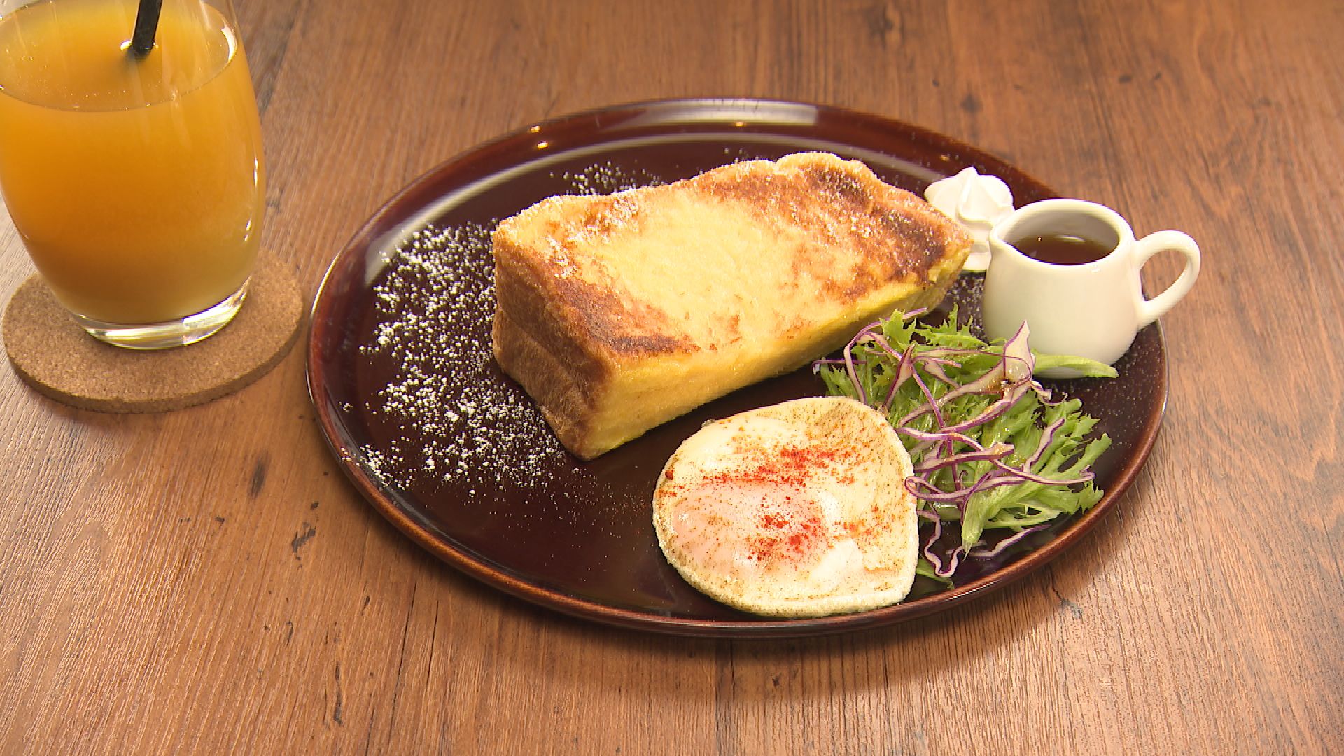 「厚切りふわとろフレンチトーストセット」(715円)は、お店の人気メニュー「厚切りフレンチトースト」と同じ価格で、サラダ・目玉焼き・ドリンクがセットになった、1日10食限定のコスパ最強モーニング。