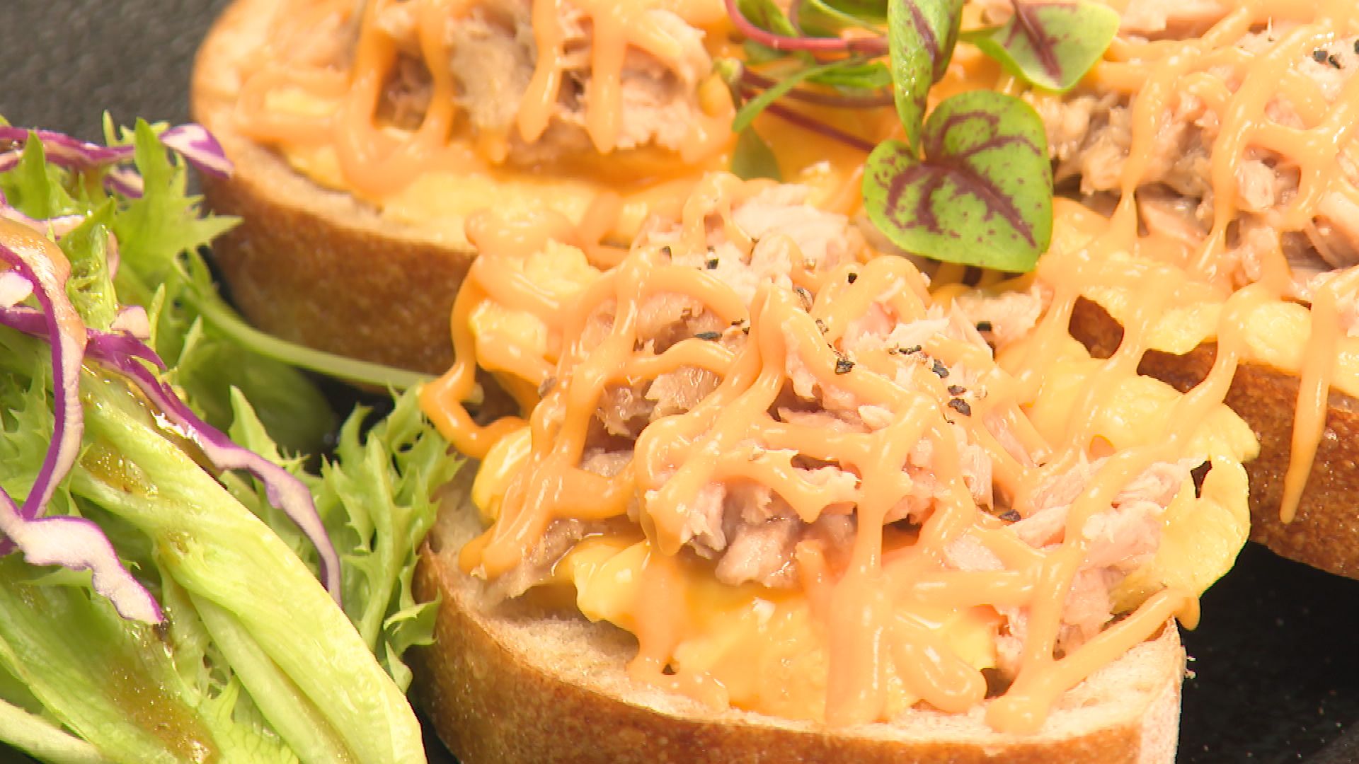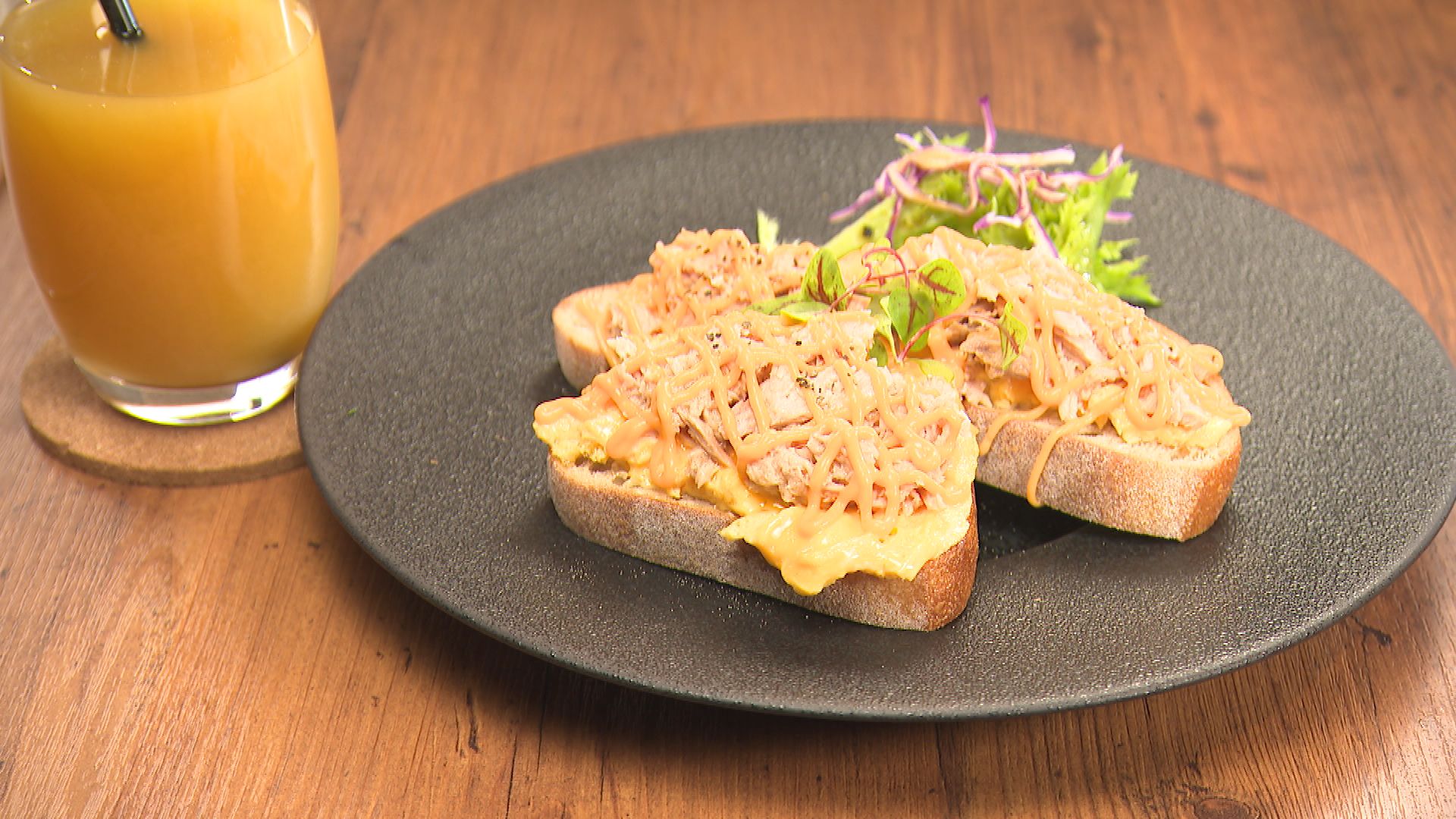 チーズとツナの相性がよく、カンパーニュのしっかりとした食感で食べ応えも十分。朝からしっかり食べたい人におすすめです。見た目の華やかさも魅力的。