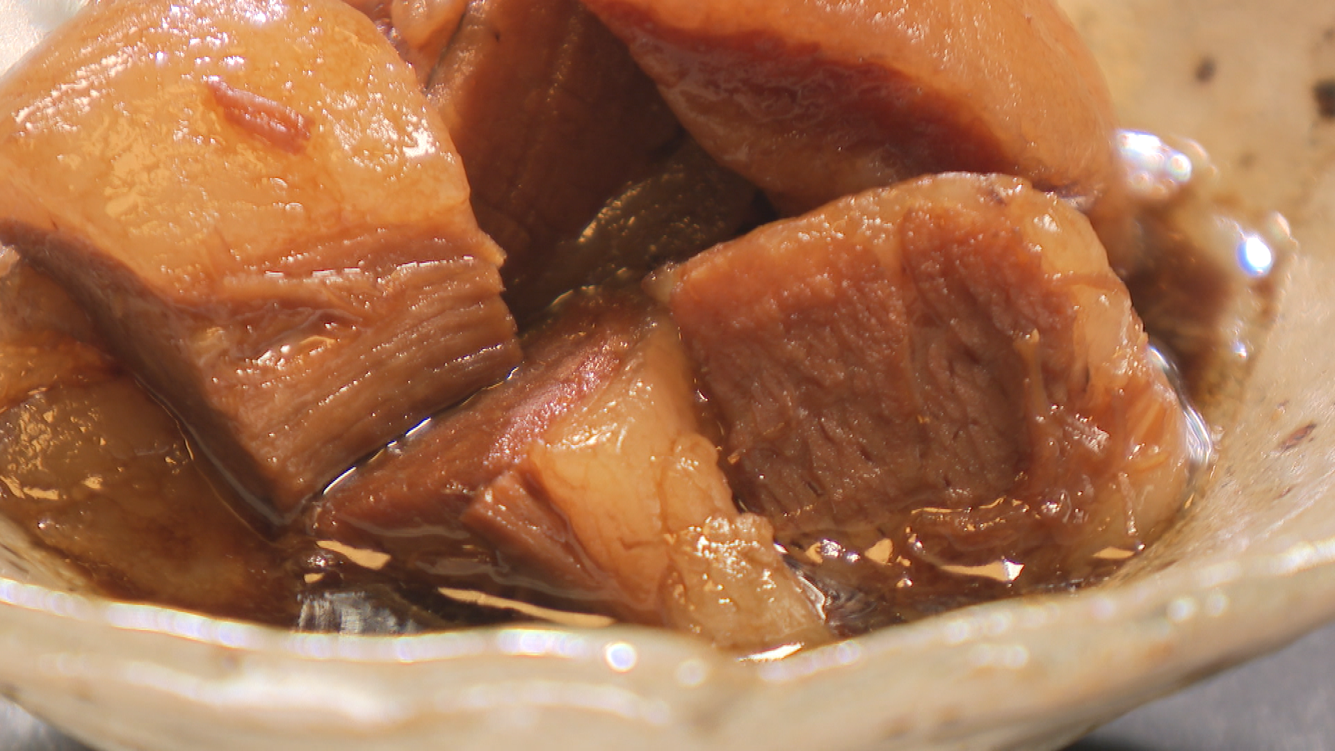 丸一日かけて何度も水を変えながら煮込み、余分な脂分を取り除いた後、醤油ベースの自家製タレと絡めてさらに煮込んだ手間のかかった逸品。
