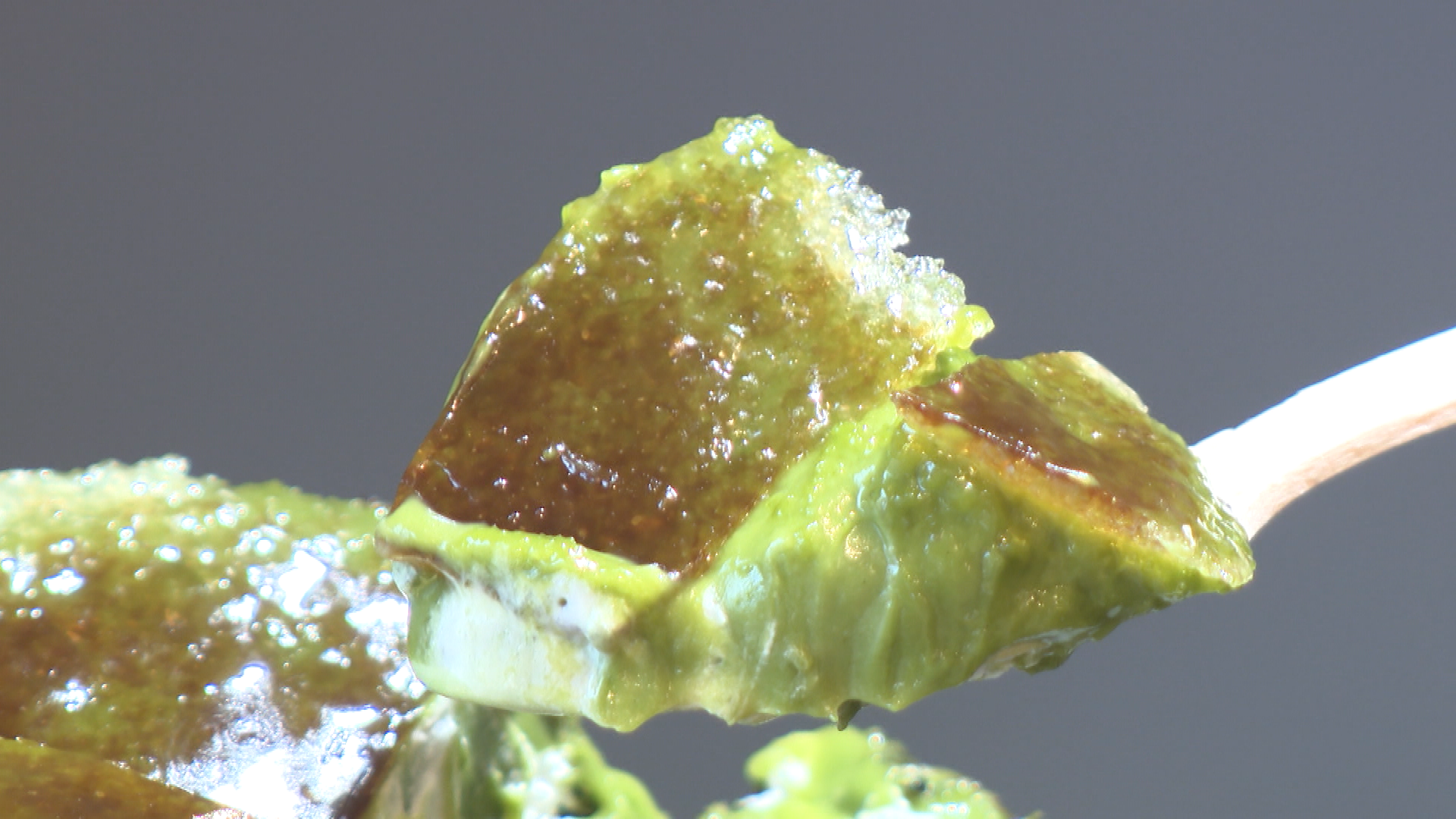 カリッと香ばしいブリュレをスプーンで割ると、濃厚で香り高い掛川抹茶クリームと
