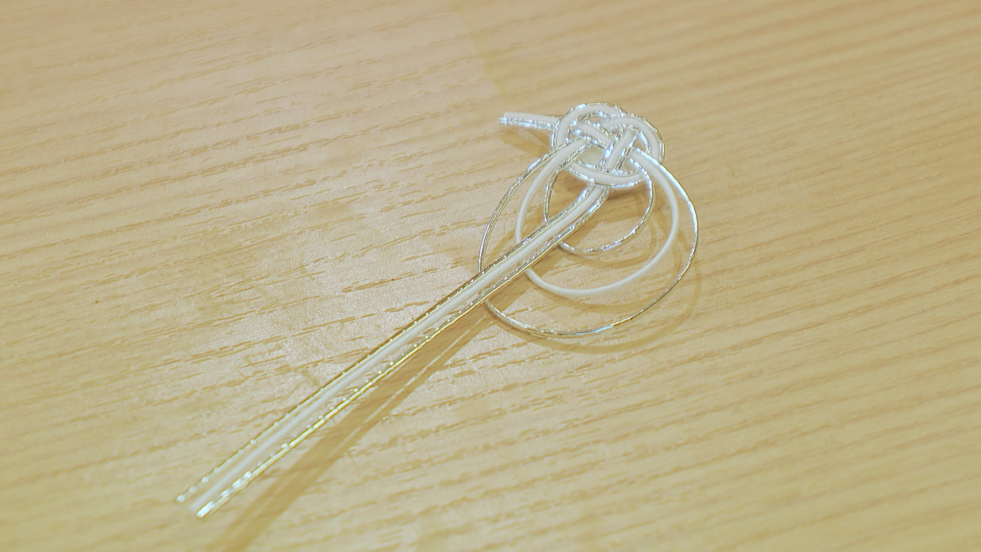 包装に使われている水引は石川県の伝統工芸「加賀水引」。職人による手作りで、持ち帰った後は本の栞などにも利用できる心遣いも嬉しいポイント。