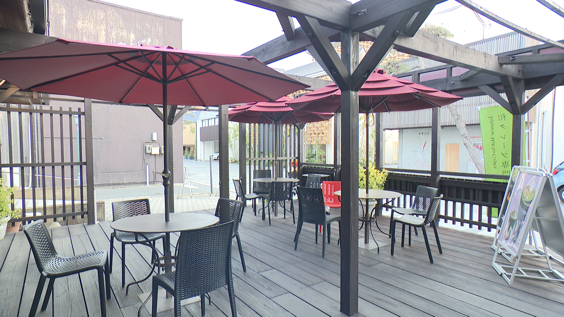 テラス席を完備した開放的な空間で和クレープが楽しめ、店内にも飲食スペースを用意。
