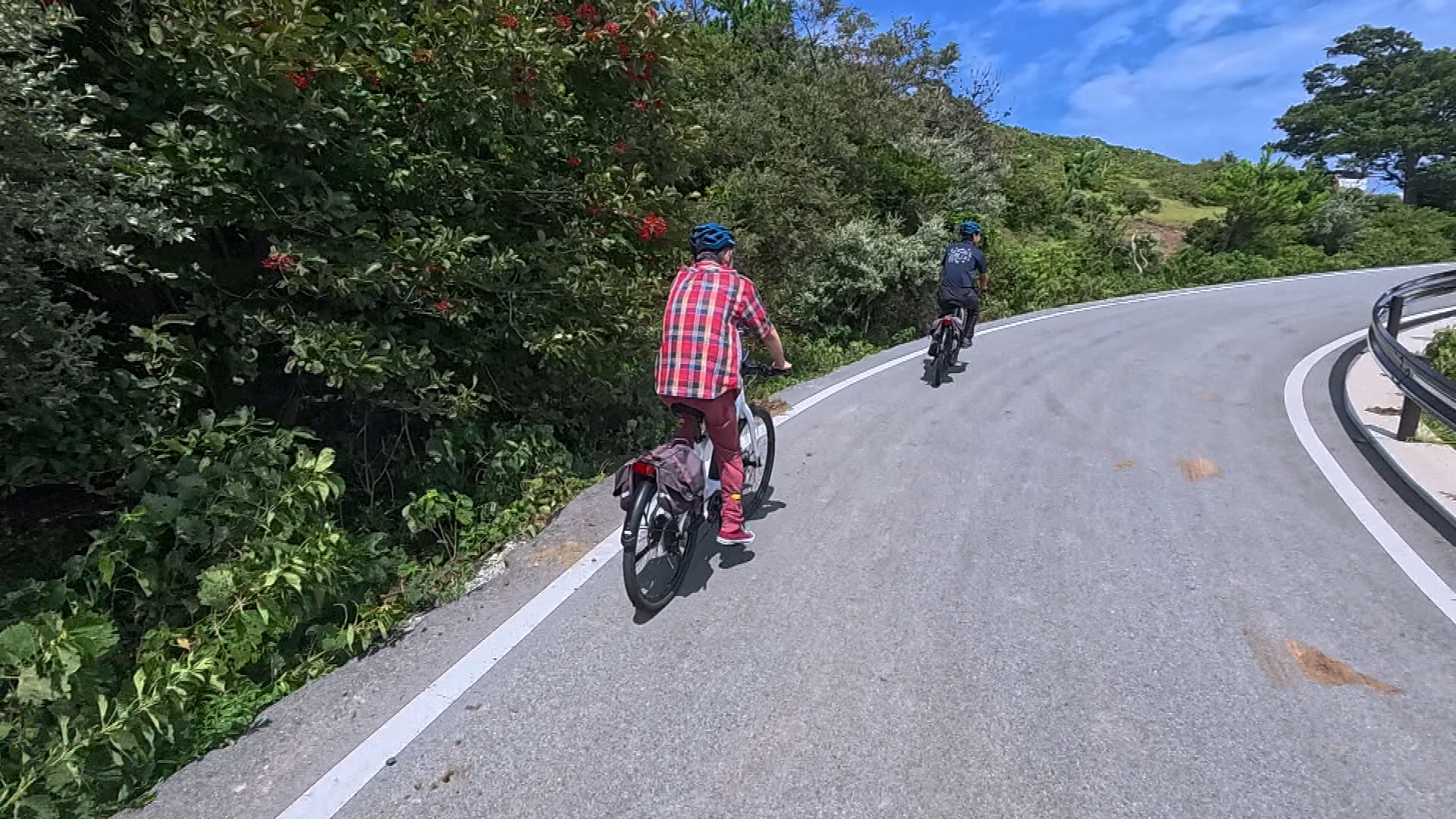 電動マウンテンバイク「E-BIKE」で、海抜257メートルの絶壁・摩天崖を目指します。