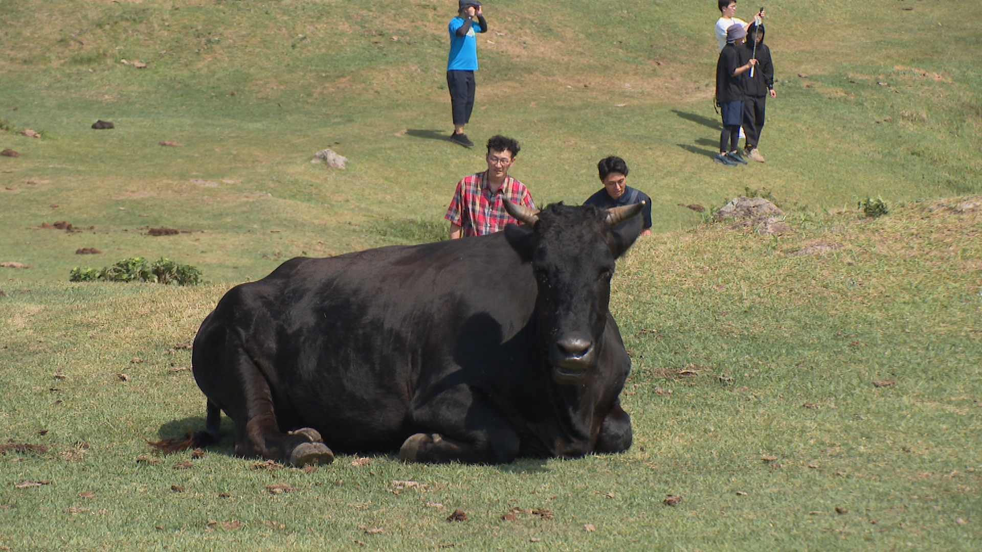 摩天崖周辺の草原は、放牧されている牛や馬が自然の芝刈り機として機能し、美しい草地を維持しています。