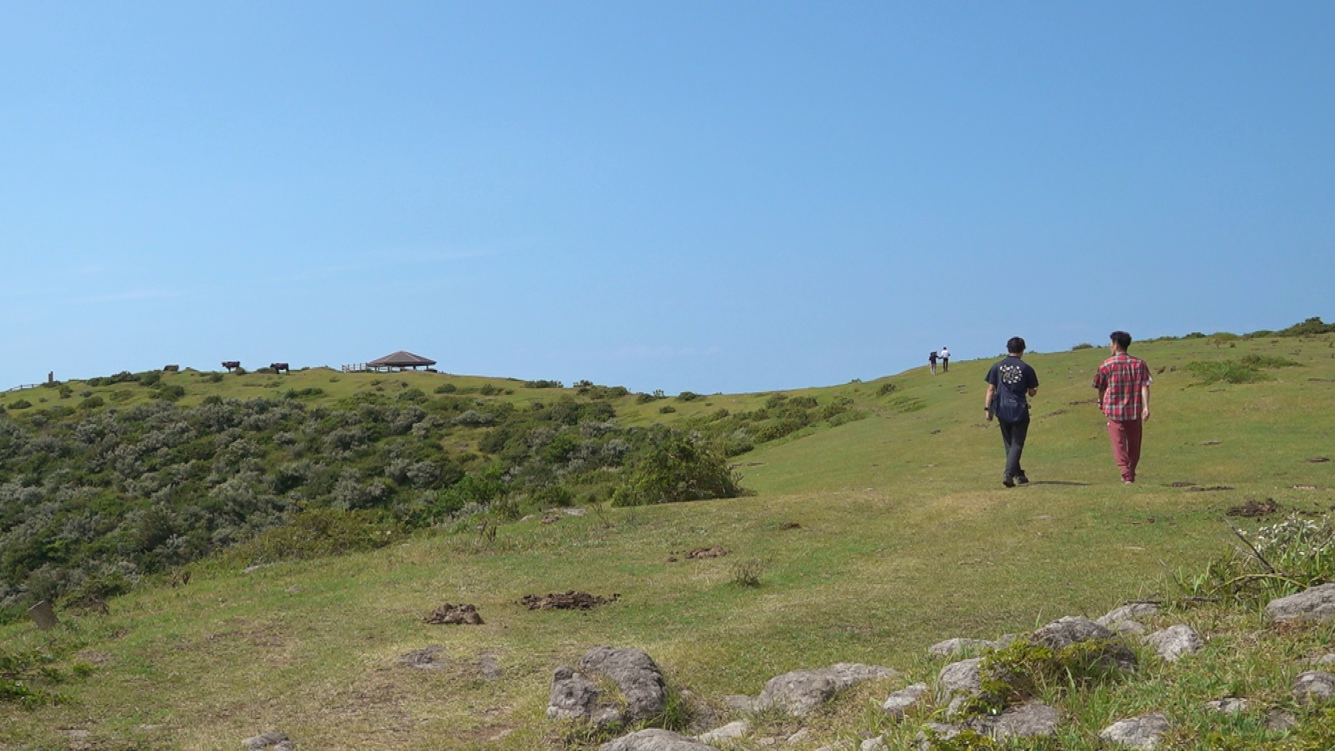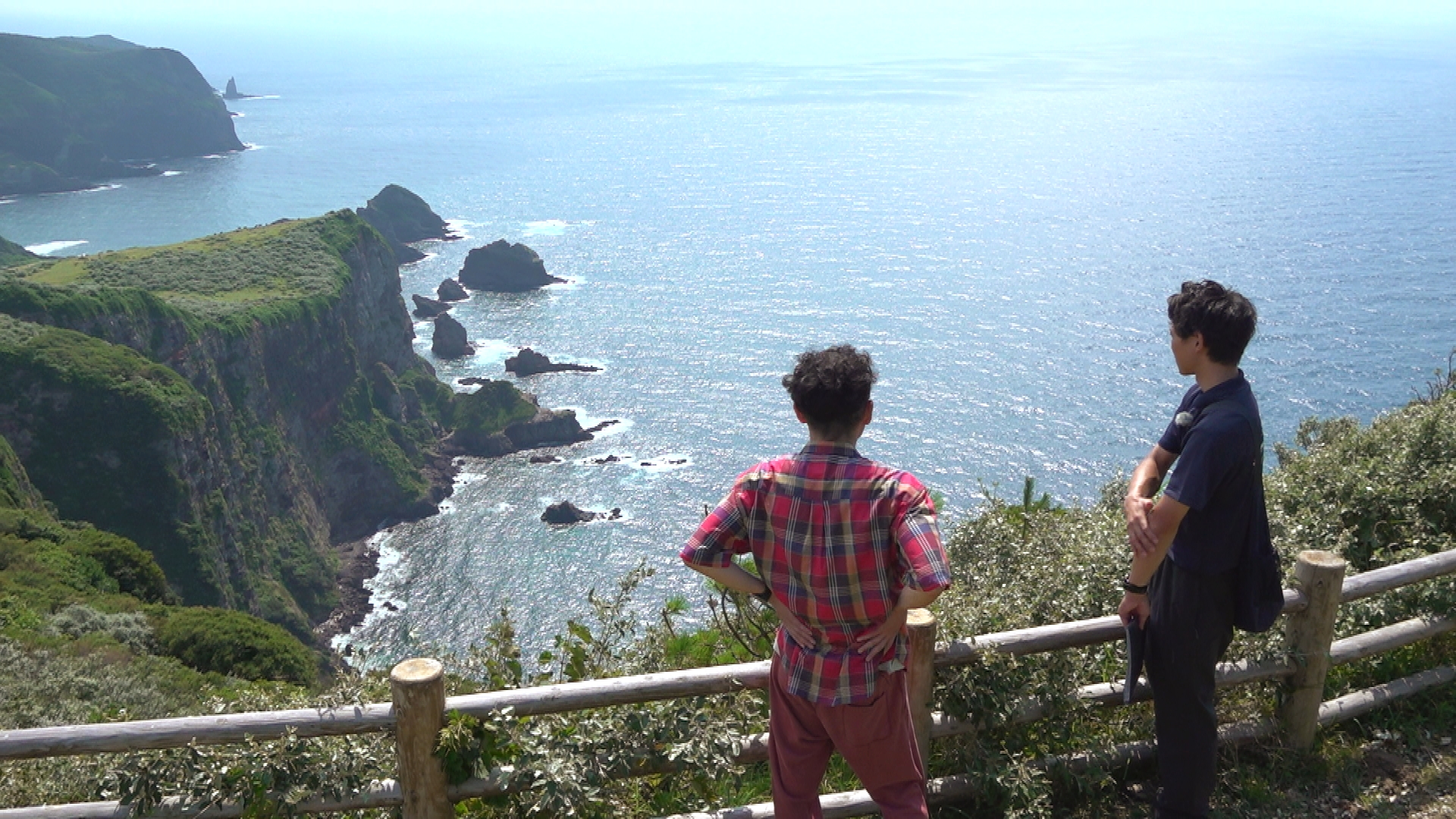 展望所からは約7キロメートルにわたって続く海蝕崖が一望でき、その壮大さに馬場さんも「映画に出てきそう!」と大興奮。